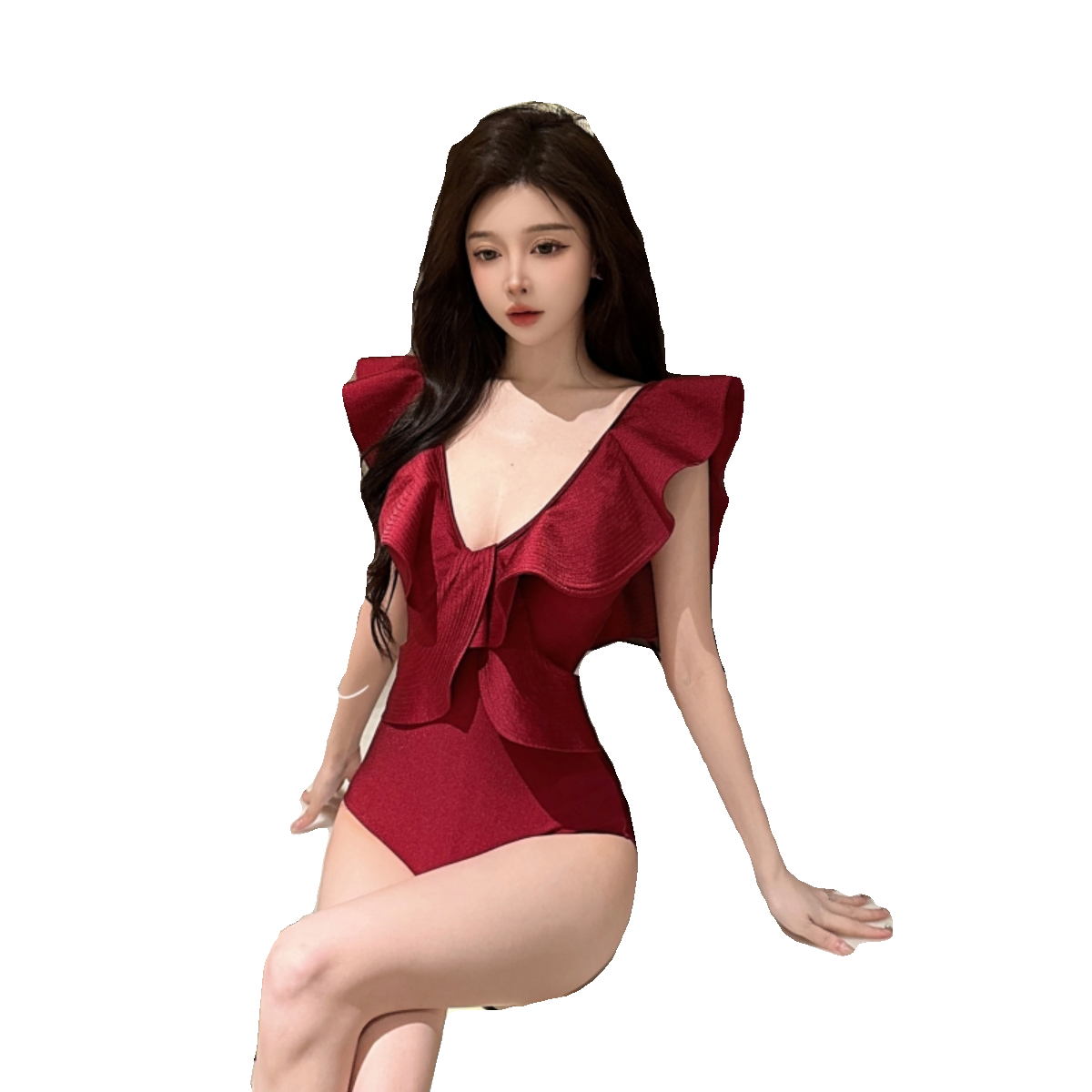 Miss米花 泳衣女性感2025新款 高级感复古连体遮肉显瘦泡温泉度假