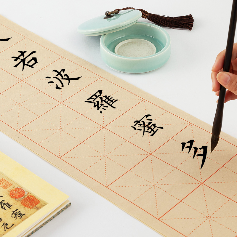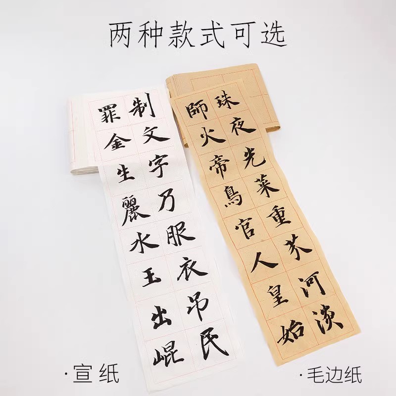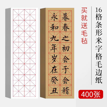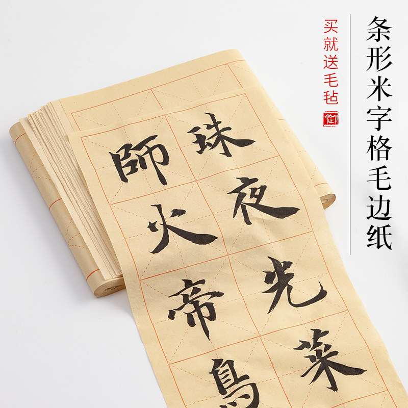 毛边纸16格条形米字格宣纸长条书法专用纸练毛笔字纸练习纸学生用纸半生熟作品纸书写纸加厚写毛笔练字纸批发