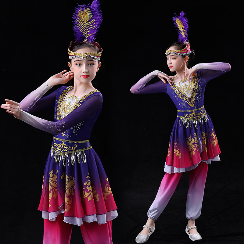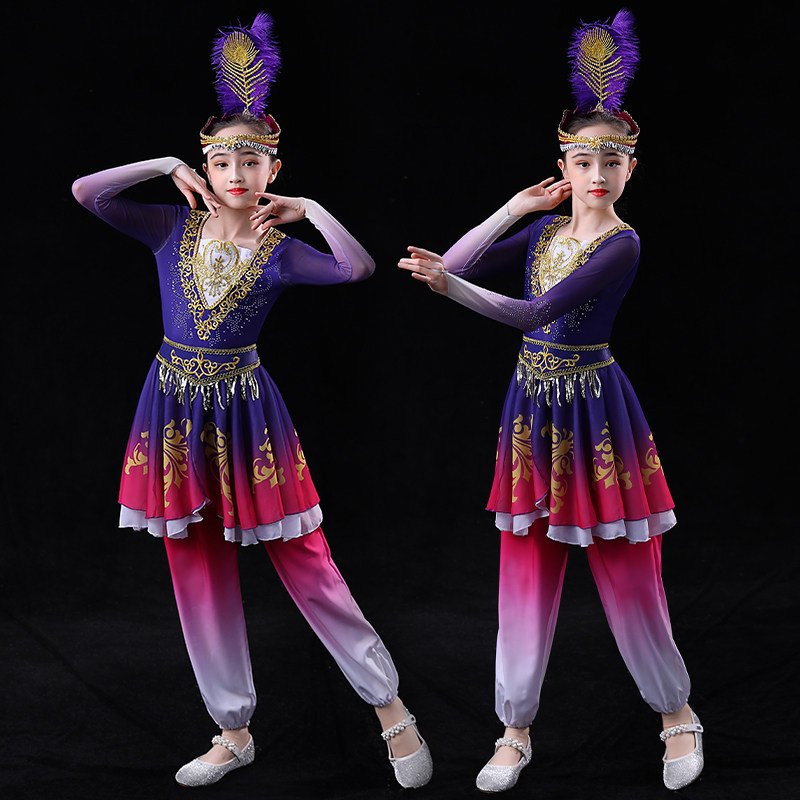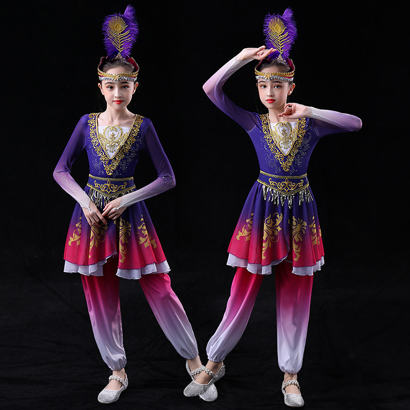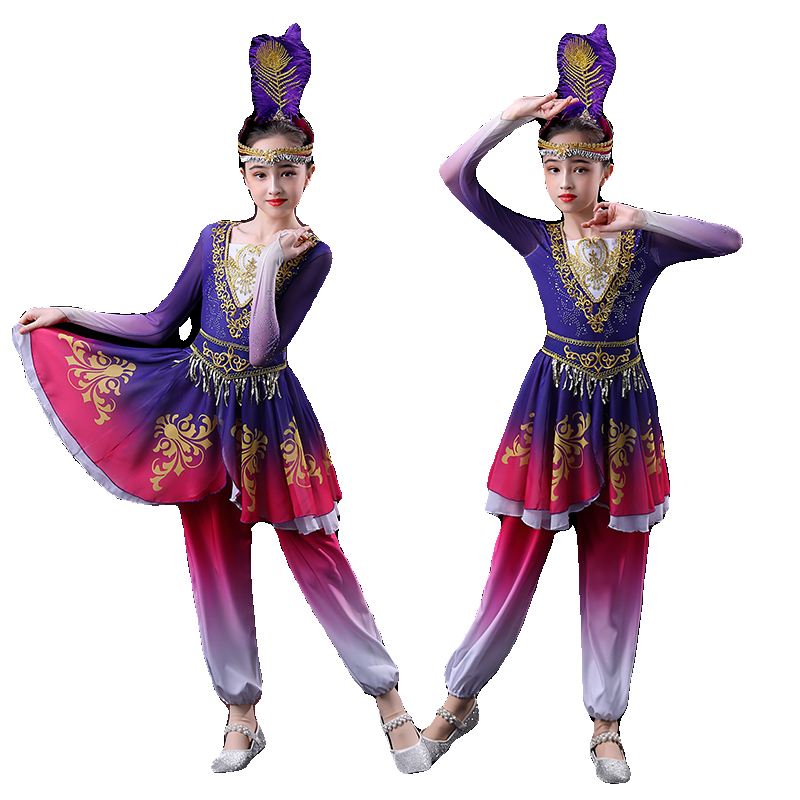 儿童新疆舞蹈演出服大摆裙维吾尔族铃鼓舞女童少数民族少女裤子装