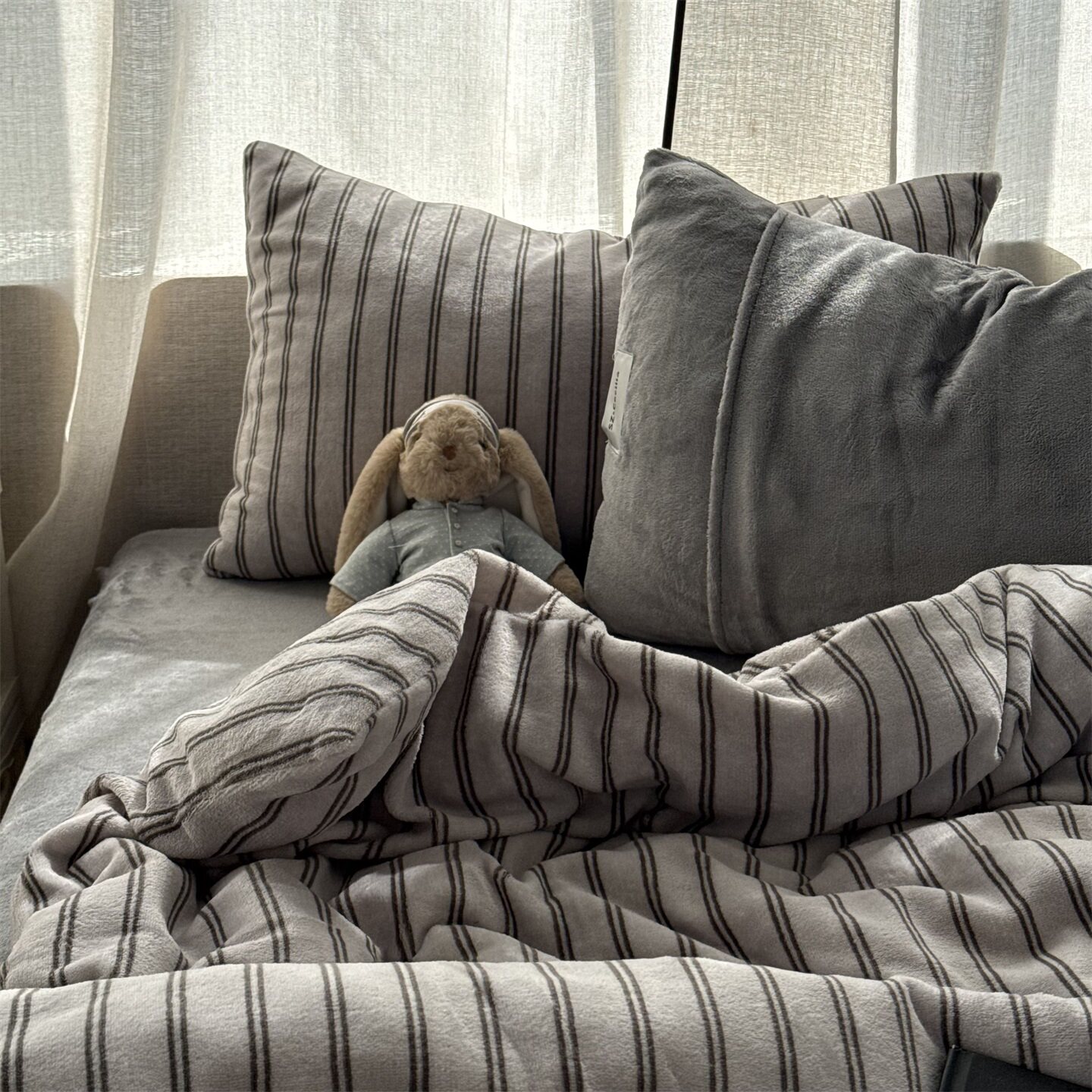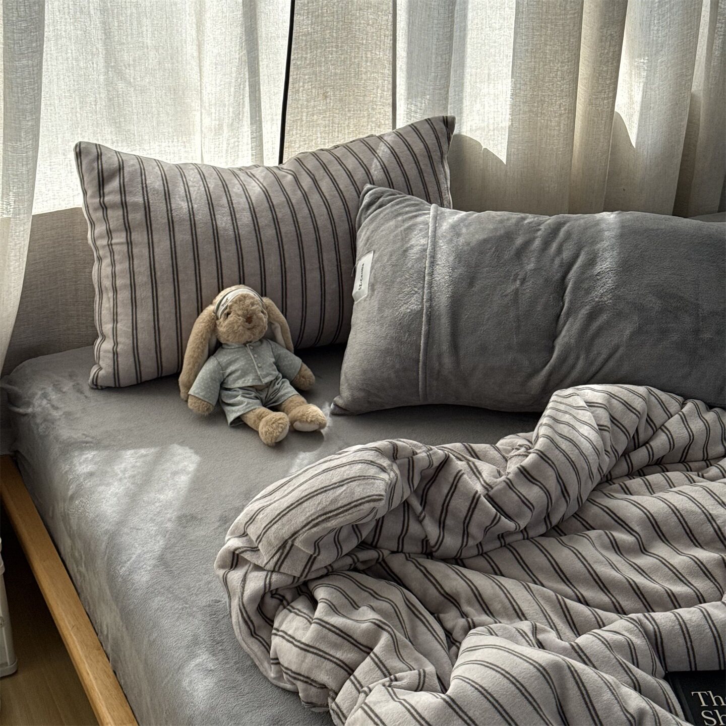 無绵丨简约条纹牛奶绒四件套床笠