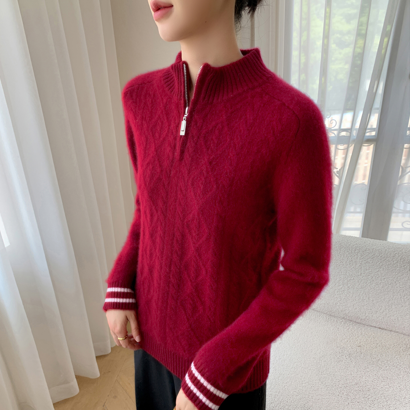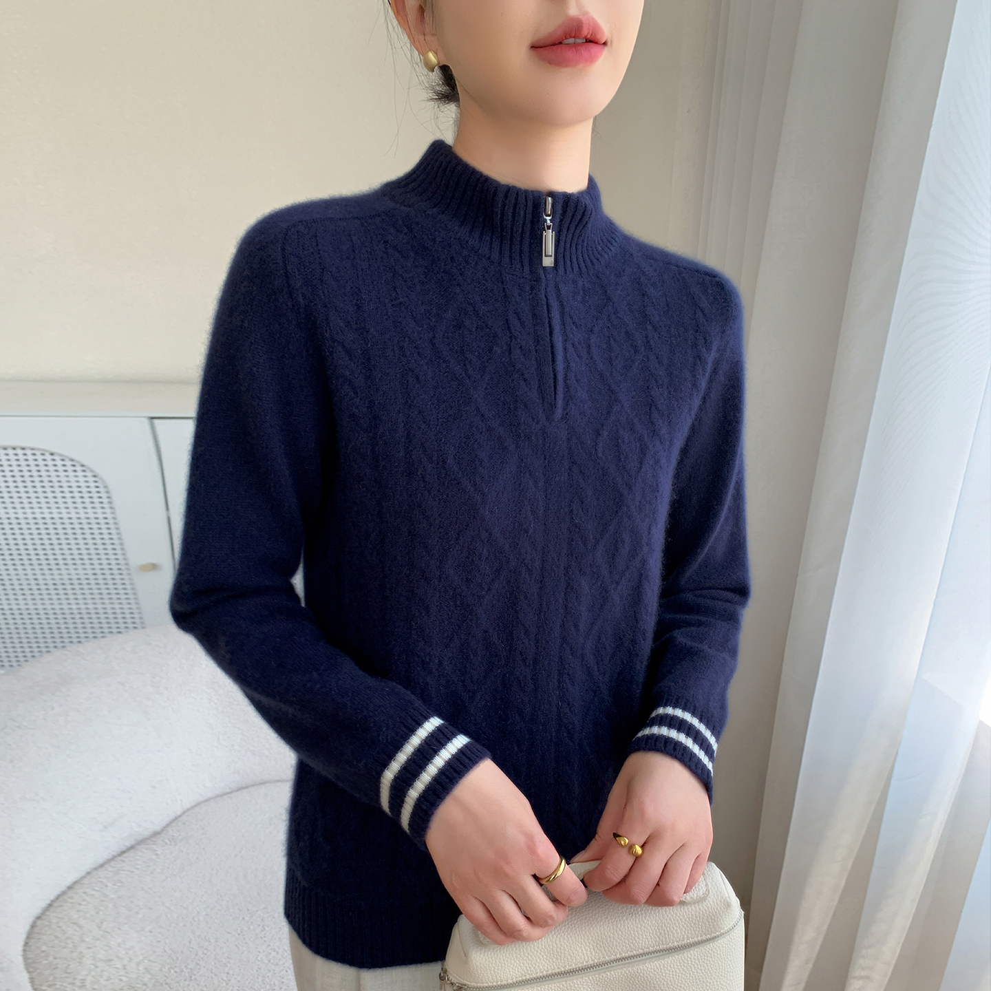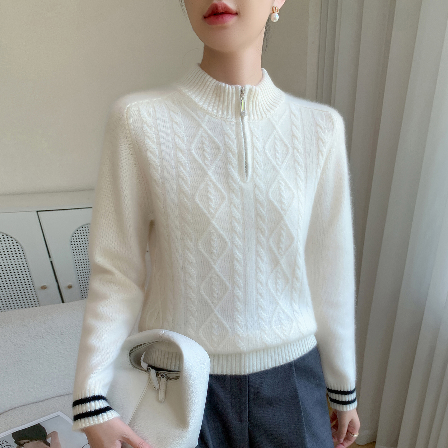 阿尔巴斯初剪山羊绒衫女半高领加厚打底无扎感针织衫显瘦软糯毛衣
