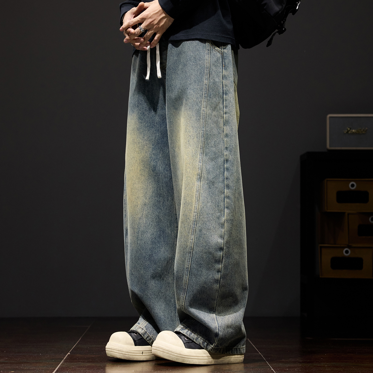 高个子加长版弯刀裤男秋2025新款宽松直筒阔腿拖地牛仔裤男士加绒