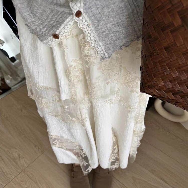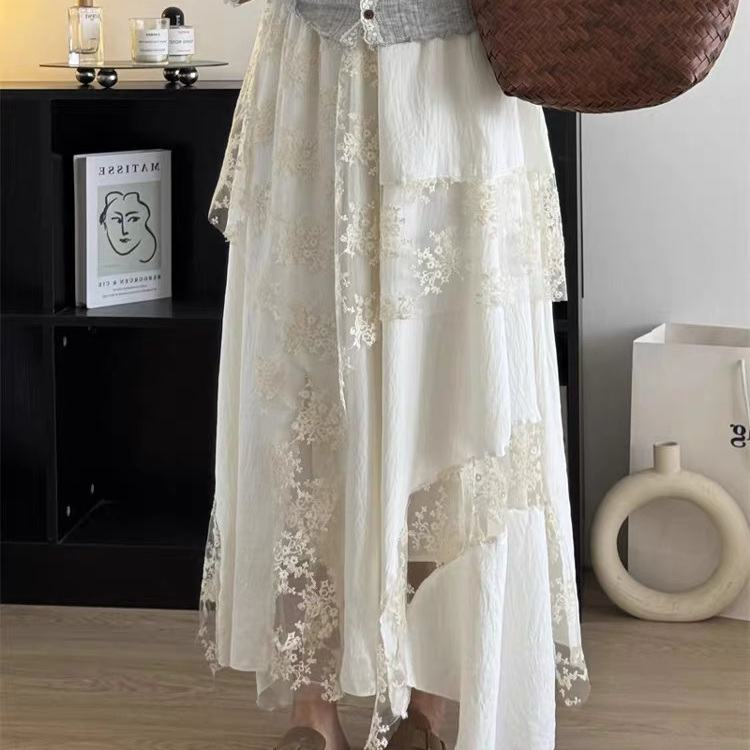 高级感蕾丝网拼接半身裙春秋女甜美穿搭不规则裙摆高腰显瘦中长裙
