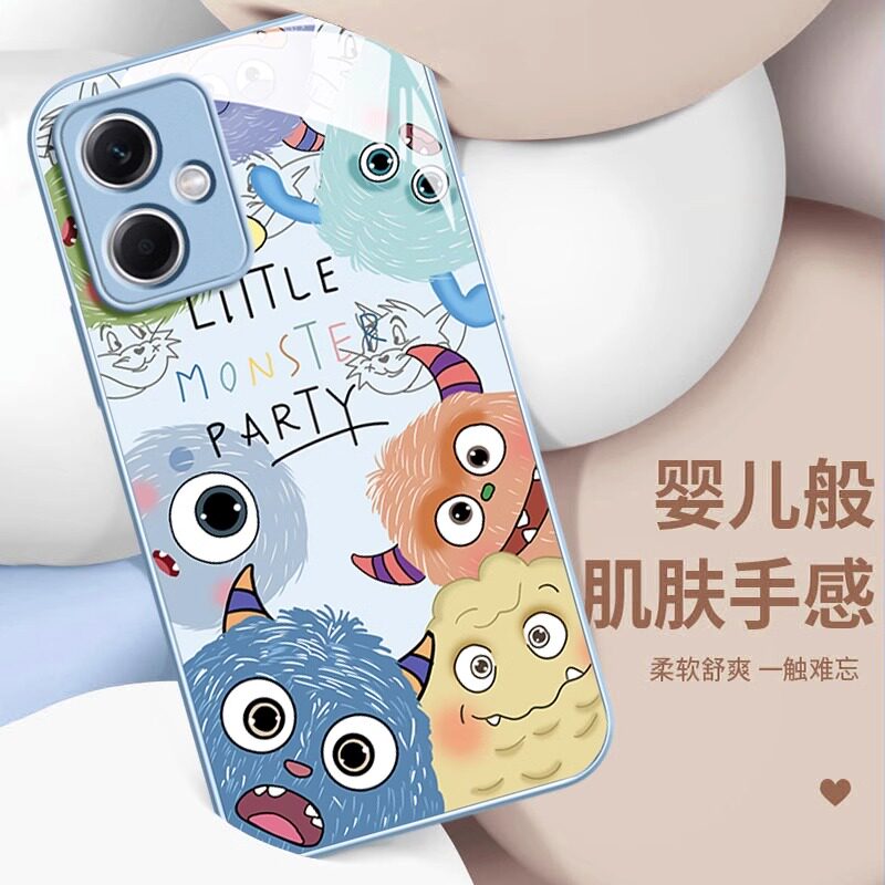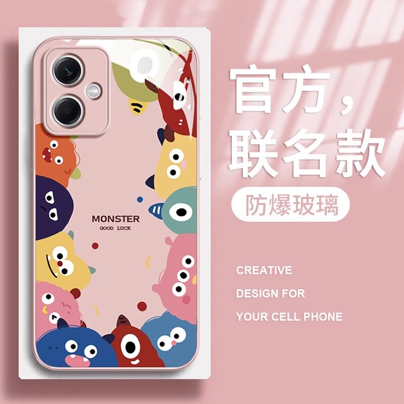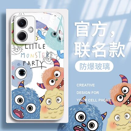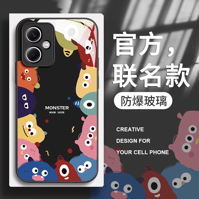 小怪兽家族适用红米note12turbo手机壳新款note11玻璃note10Pro全包redmi防摔小米Note12保护套5g女款por卡通