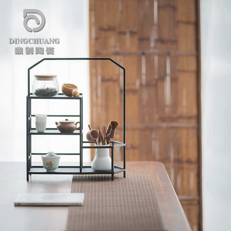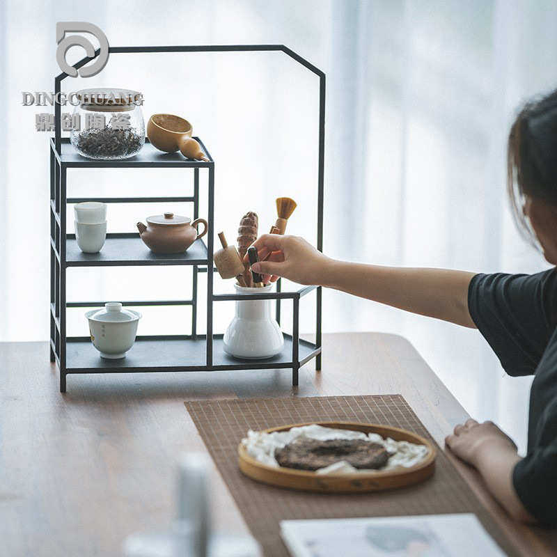 铁艺茶棚架多层茶杯架置物架博古架功夫茶具收纳桌面展示架茶道