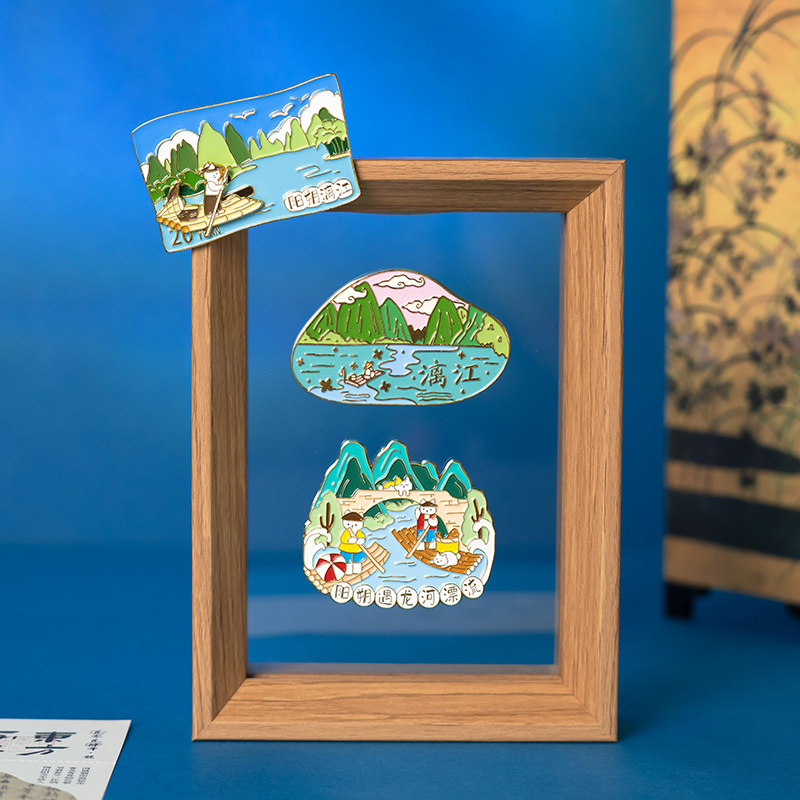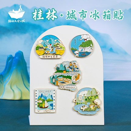 猫的天空之城桂林阳朔磁吸冰箱贴旅游纪念品广西漓江金属徽章文创