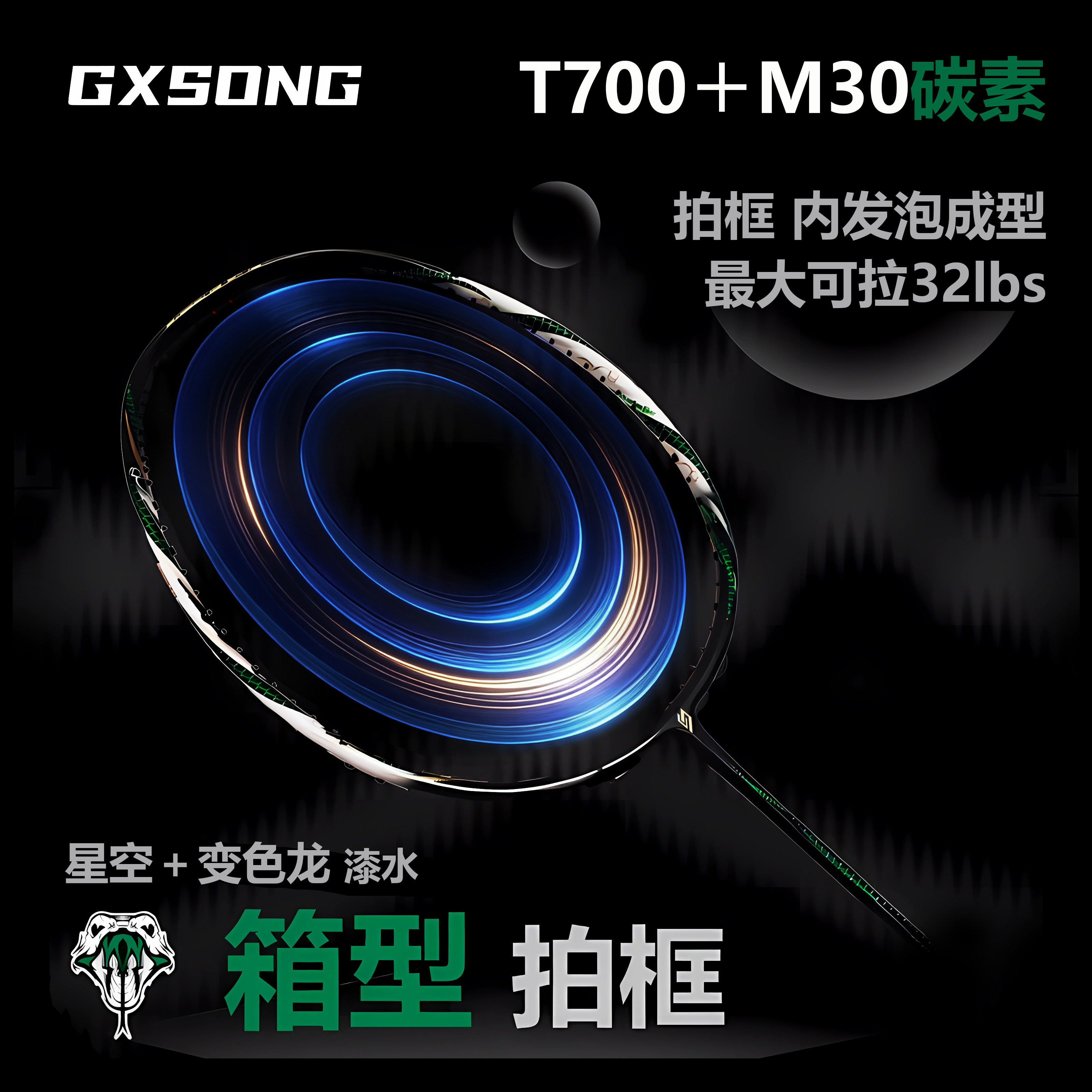 正品霜降青蛇pro白绿金绿羽毛球拍专业3u4u百洛碳素男女拍耐打