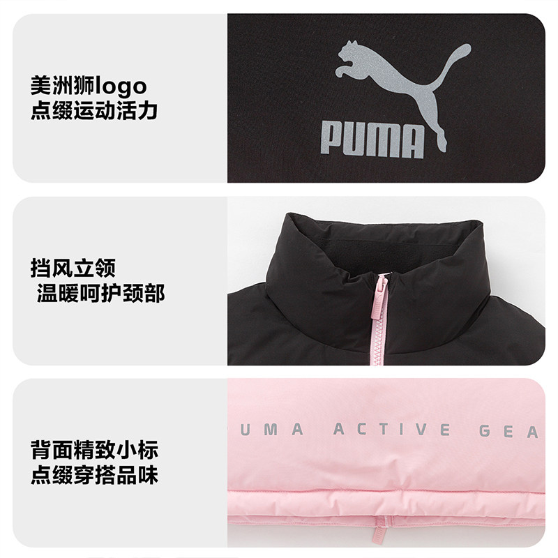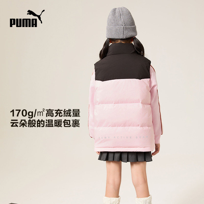 PUMA彪马女童羽绒马甲新款冬季中大童立领无袖保暖外套学生背心潮