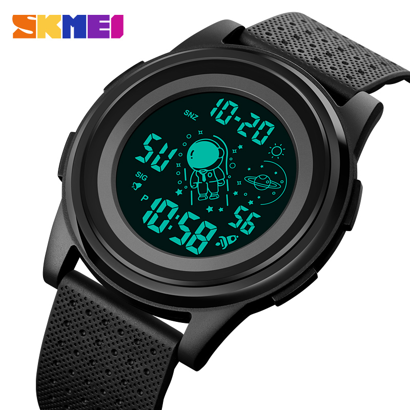 时刻美轻薄秒表倒计时太空人电子表 防水运动男女学生夜光LED手表