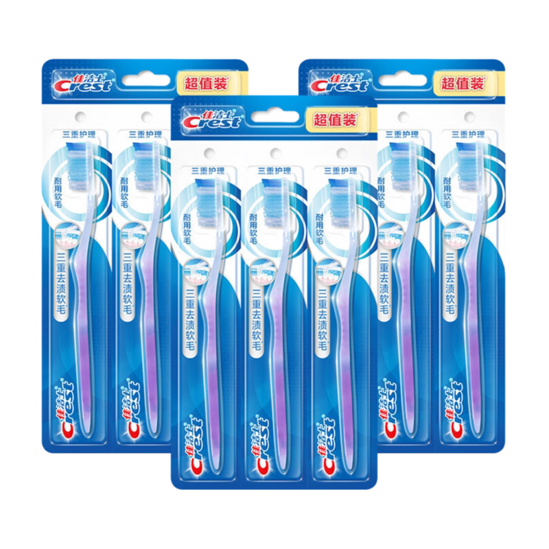 佳洁士三重护理牙刷组合 耐用软毛crest波浪牙刷颜色混发洁齿正品