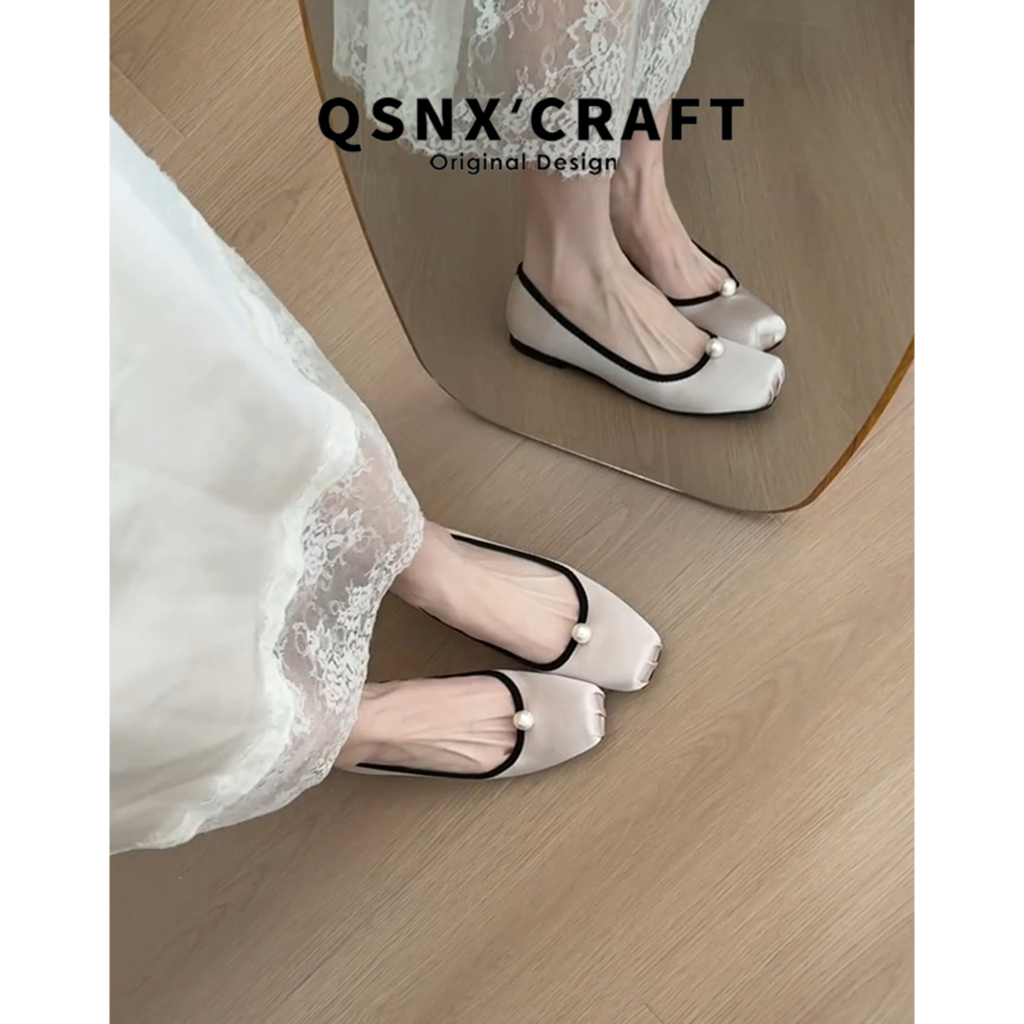 高定版~珍珠芭蕾舞鞋女2025新款平底软底浅口玛丽珍鞋配裙子单鞋