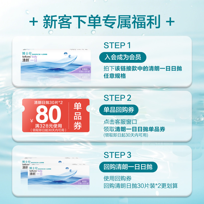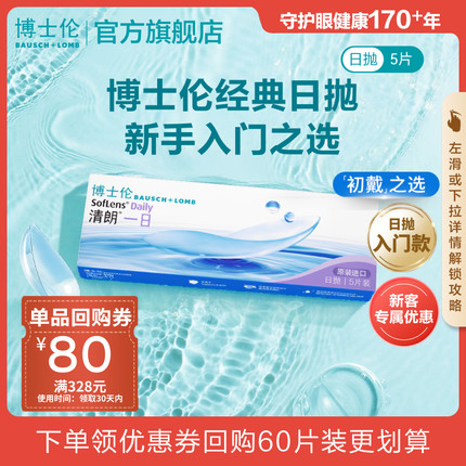 博士伦清朗一日透明高度近视隐形眼镜日抛水润高清进口官方正品