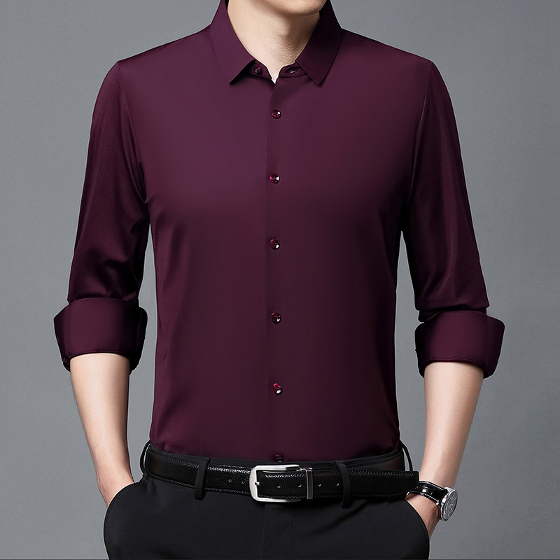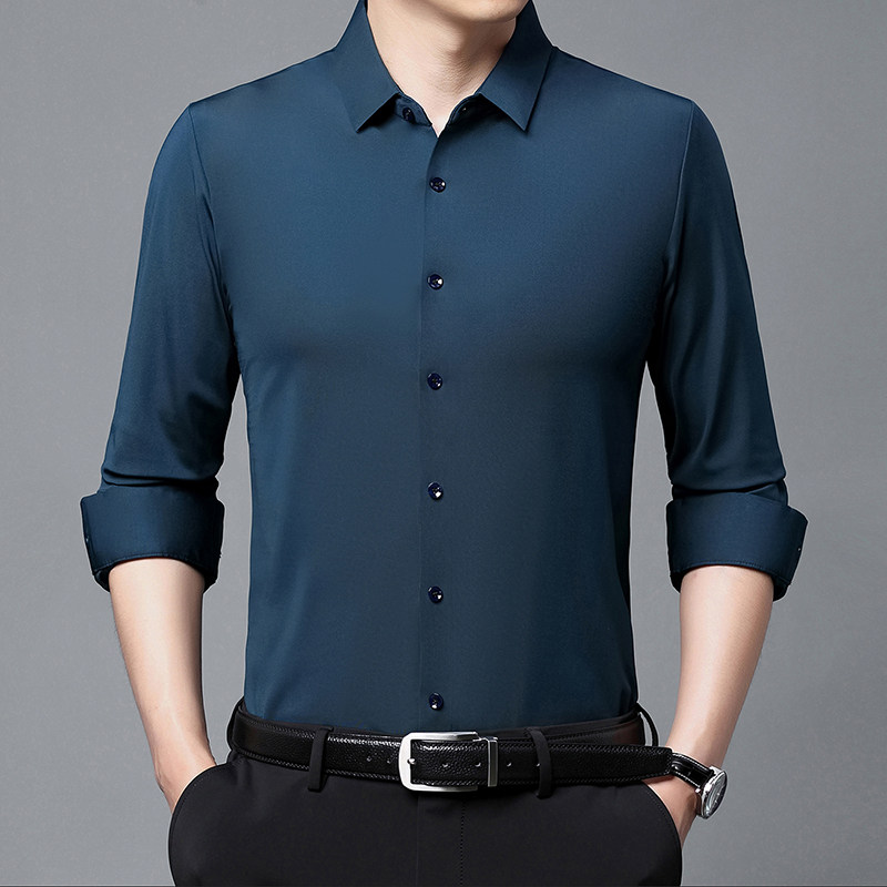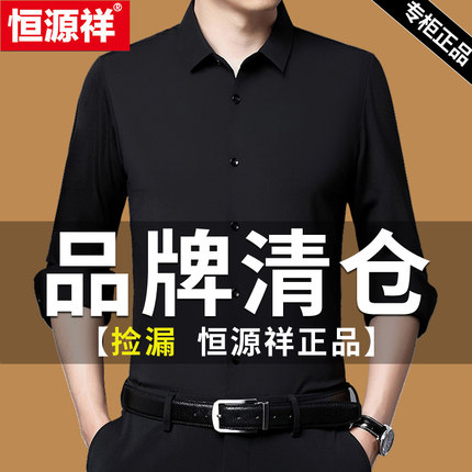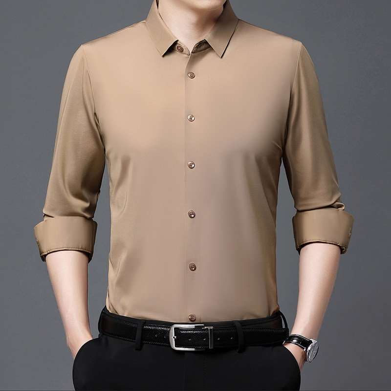 恒源祥无痕抗皱衬衫男薄款长袖春夏新款爸爸春装桑蚕丝休闲衬衣男