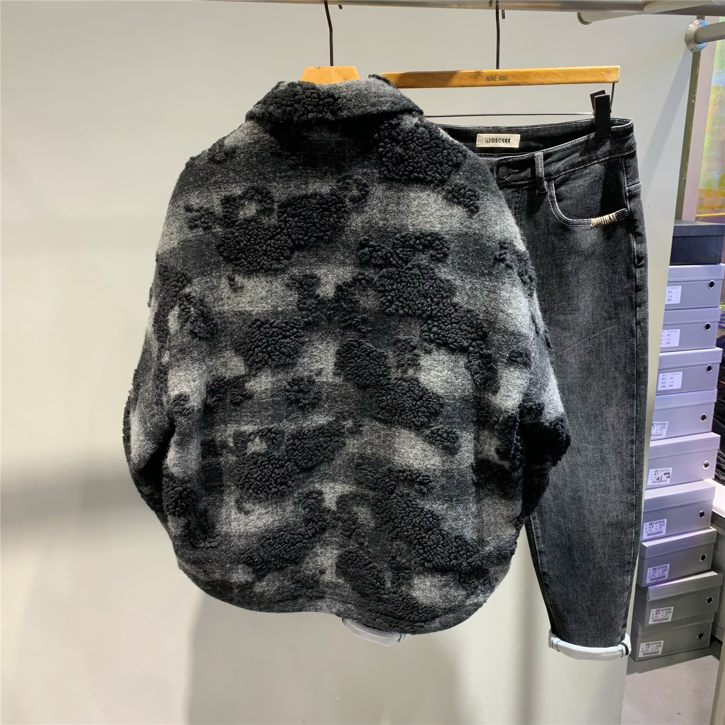 男士新款棉羊毛拼色翻领毛呢大衣韩版宽松毛绒冬季呢子高端外套潮