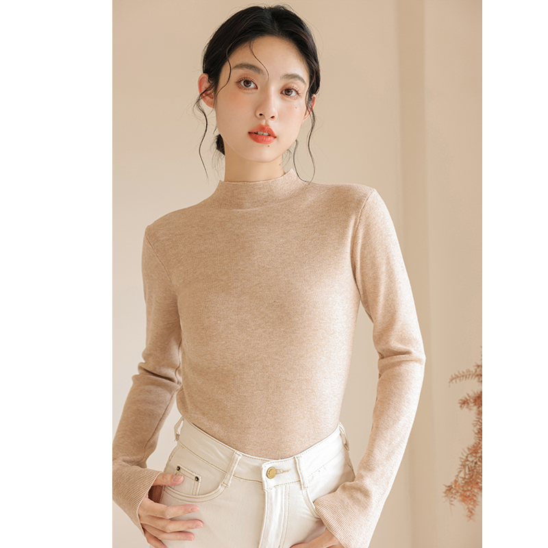 半高领毛衣女2025秋冬新款修身黑白色上衣长袖中领内搭打底针织衫