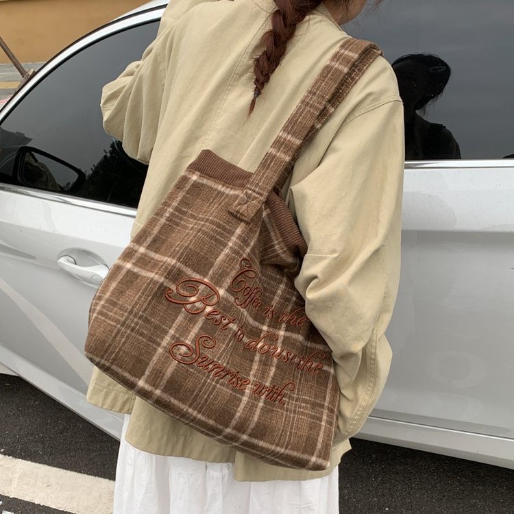 大容量覆古格子托特包女2025秋冬旅行通勤单肩包男休闲手提购物袋