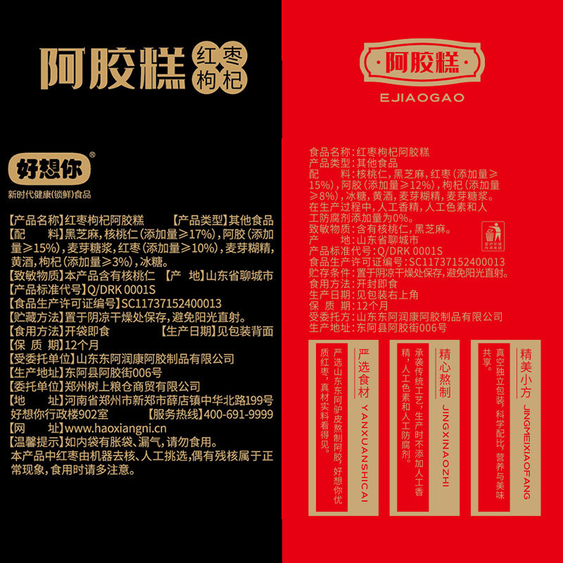 好想你红枣枸杞阿胶糕核桃阿胶膏枸杞黑芝麻东阿原产礼盒女士送礼