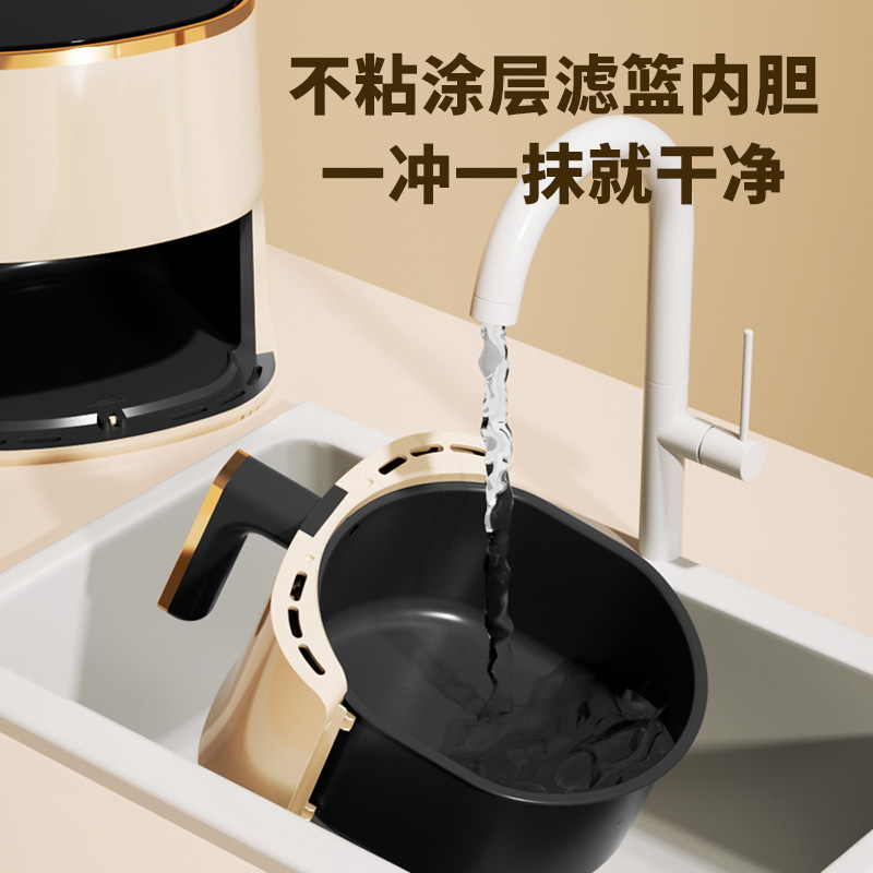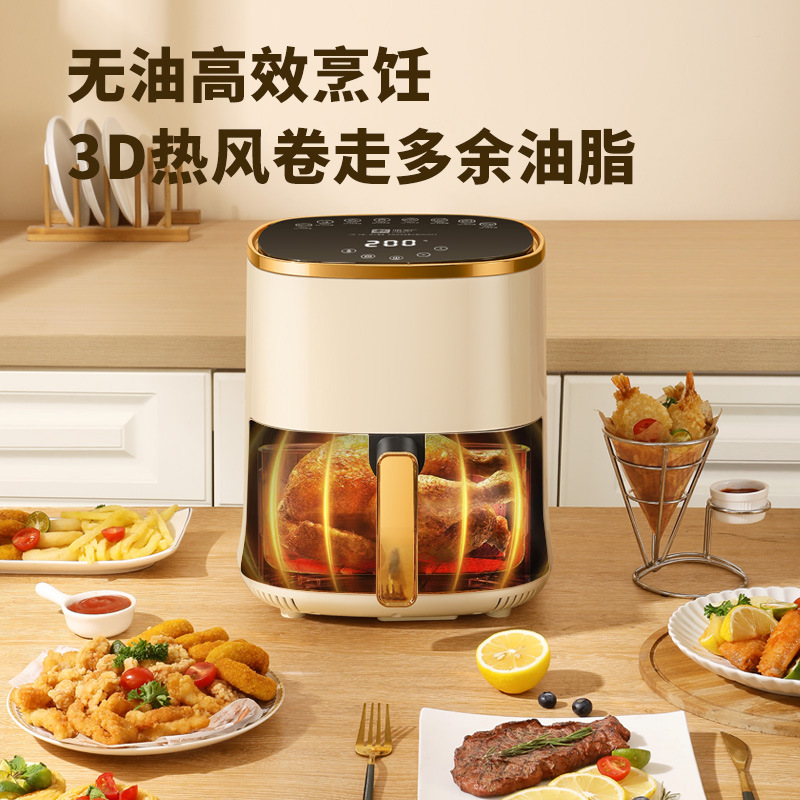 骆驼空气炸锅6L家用大容量电烤箱米白色烤薯条机礼品可视炸锅