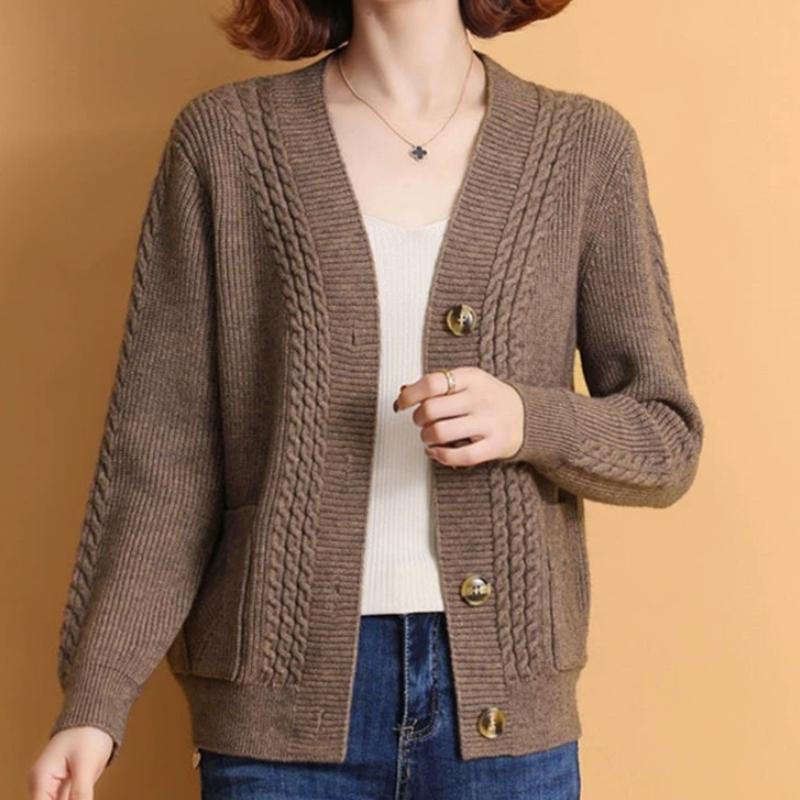 2024秋冬新款时尚加厚针织开衫女宽松洋气中年妈妈毛衣女外套大码