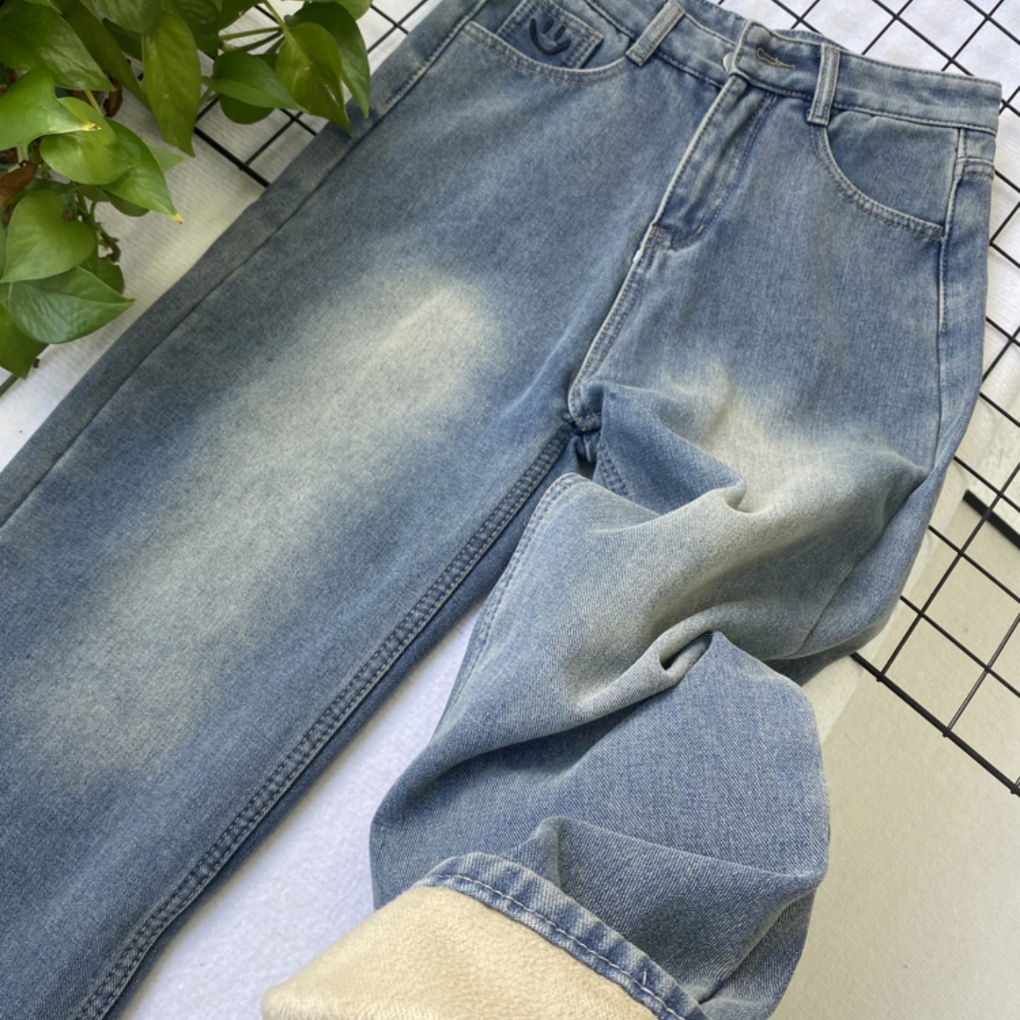 一条过冬不臃肿,加绒直筒牛仔裤