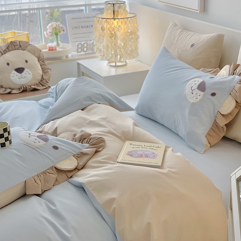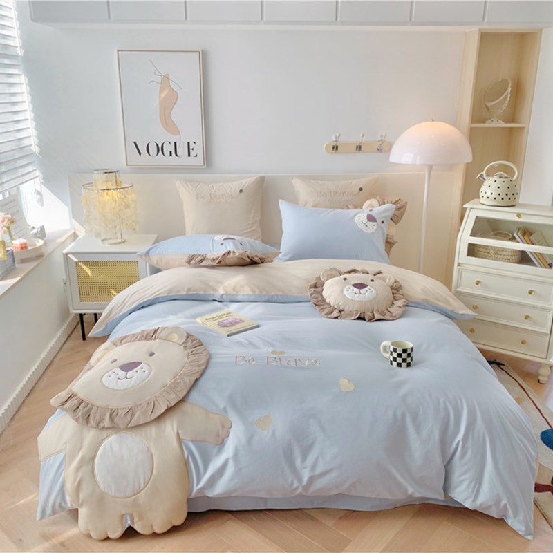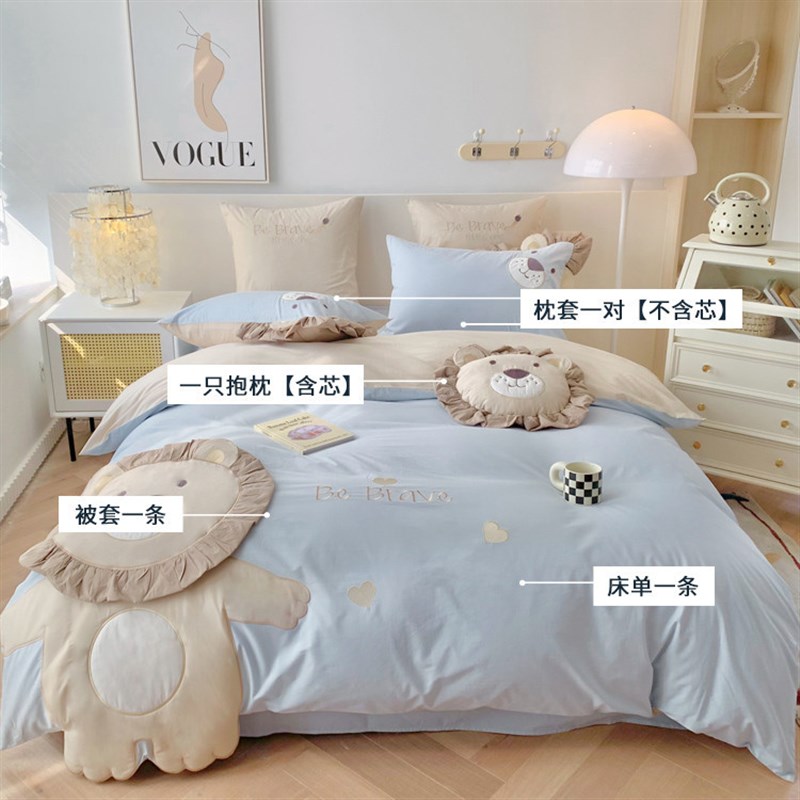 卡通风水洗棉儿童贴布绣纯棉四件套男孩子全棉T1.2米床上用品