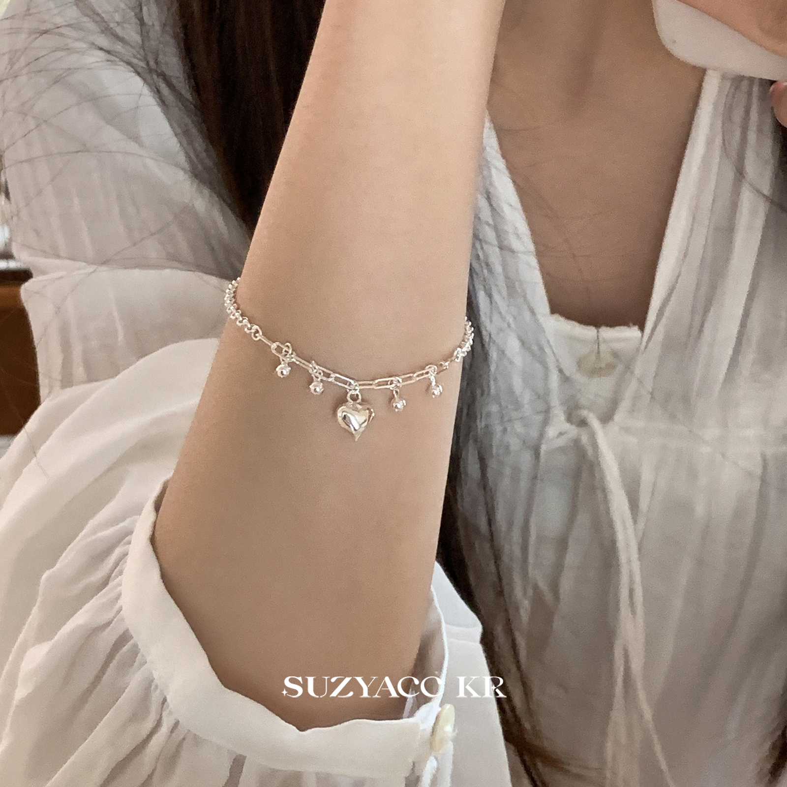 suzyacc kr早秋氛围爱心圆球吊坠纯银手链轻奢简约小众高级感手饰