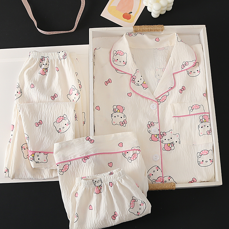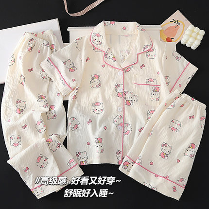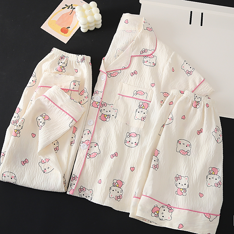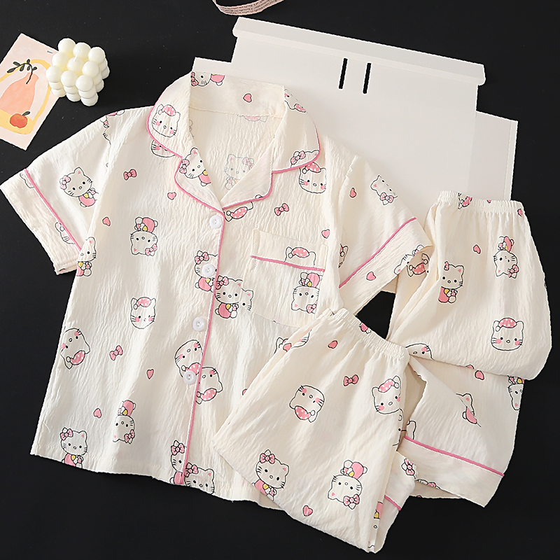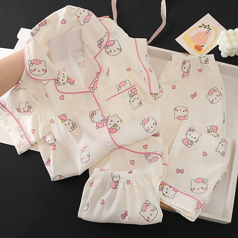 女童睡衣夏季2025新款三件套儿童短袖纯棉薄款女孩hellokitty家居