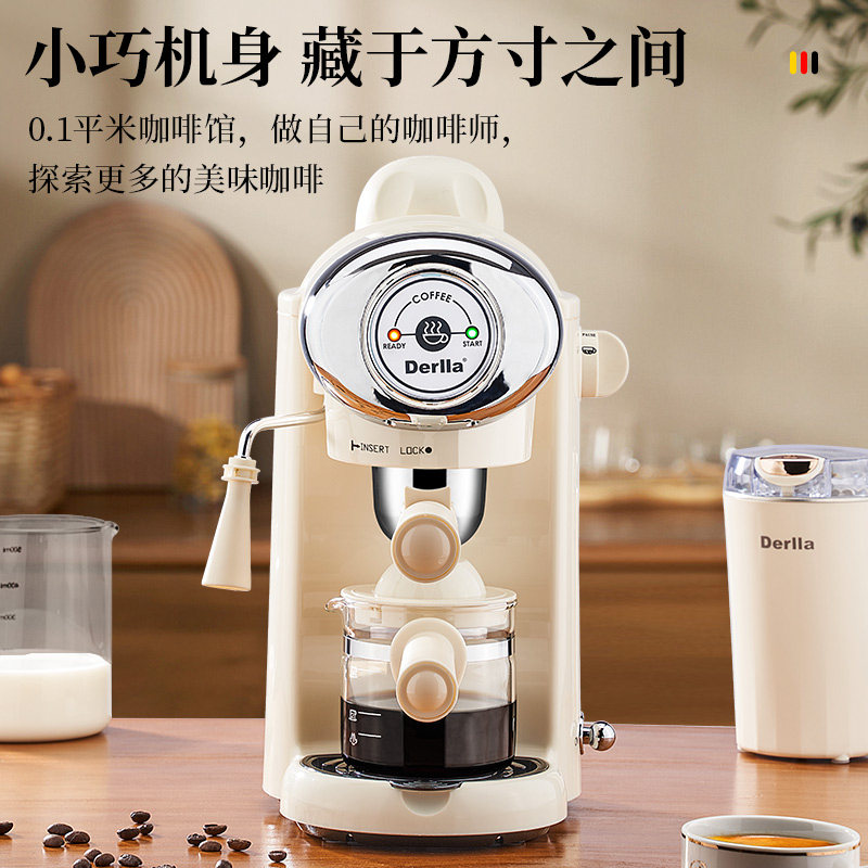 【自营】德国Derlla全半自动咖啡机小型家用意式滴漏磨豆一体奶泡