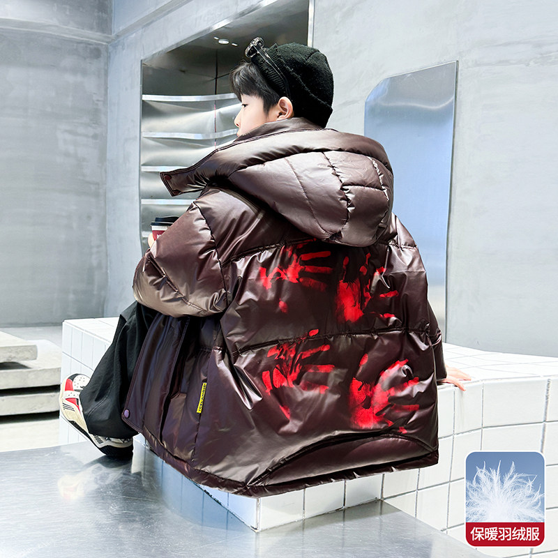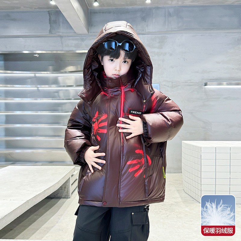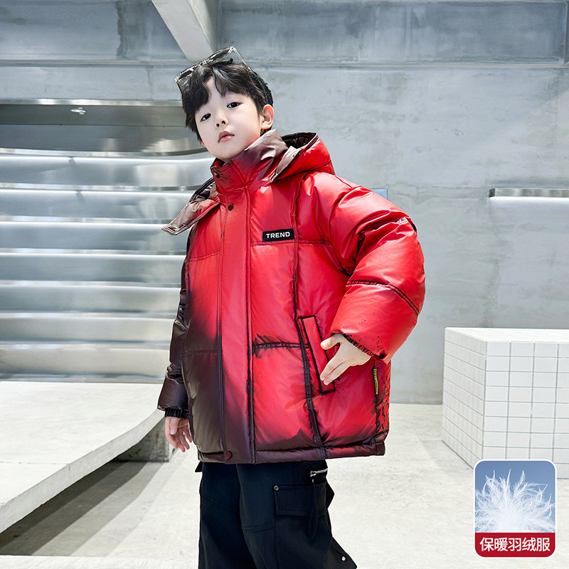 男童冬季羽绒服2025新款中大男孩炸街外套温变儿童冬装白鸭绒正品