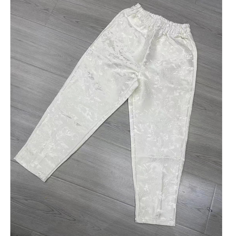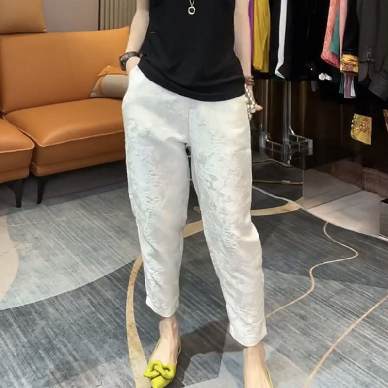 欧货民国风哈伦裤女松紧腰白色中国风提花复古萝卜裤束脚九分裤潮