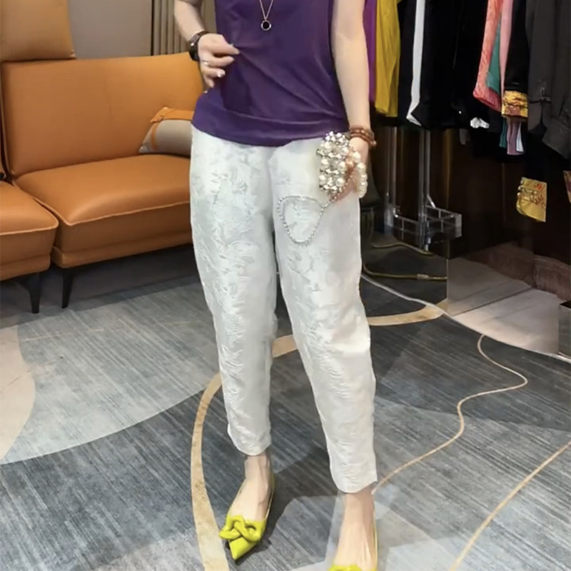 松紧腰休闲风九分裤提花