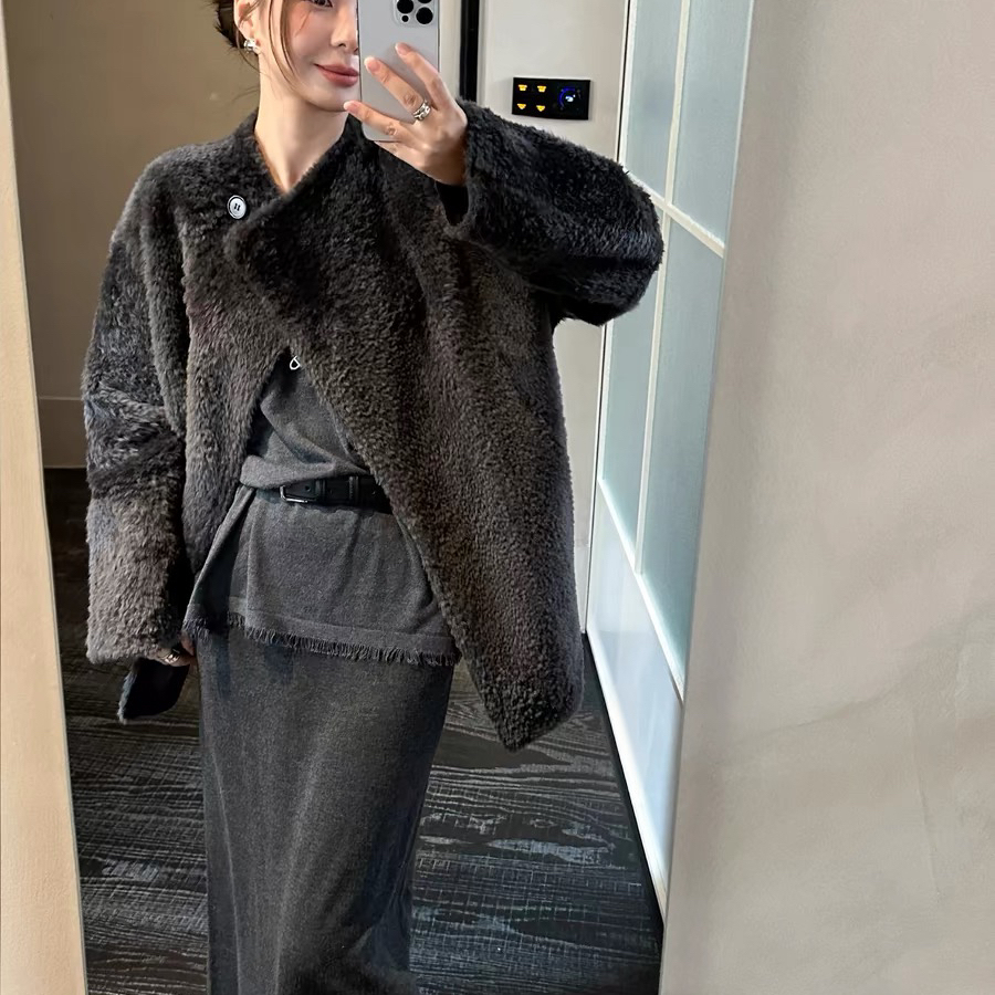 米米进口奢华两面穿中长款真羊毛拉贡皮毛一体S-HM148099