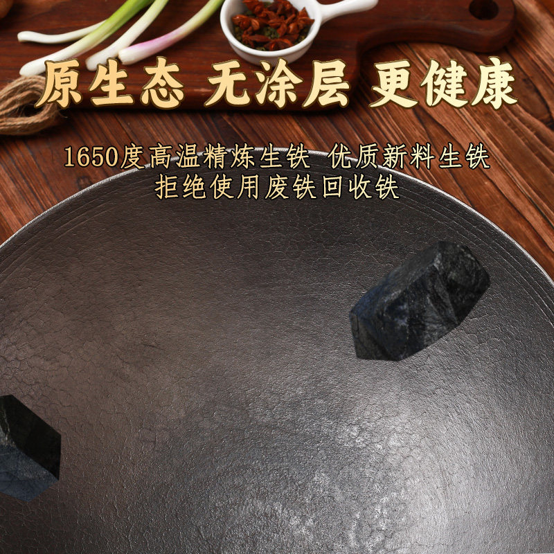 江油老式传统双耳铁锅尖底生铁锅无涂层不粘锅铸铁锅火筵炒锅老锅