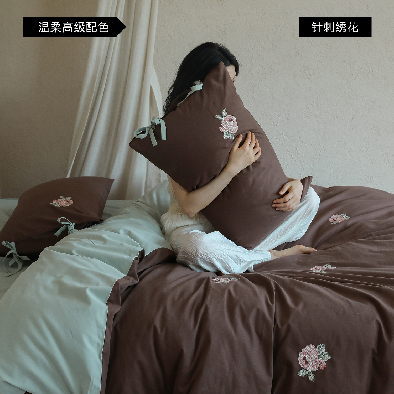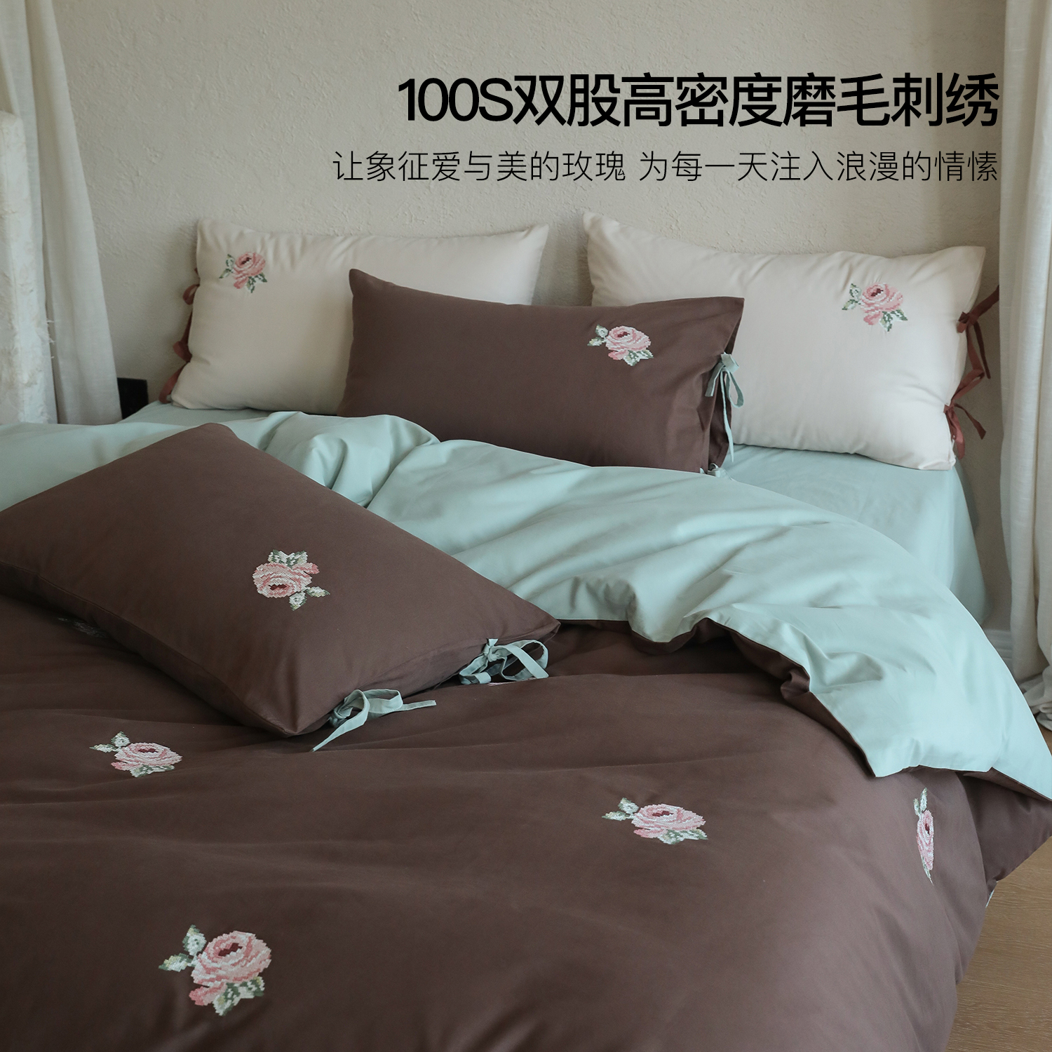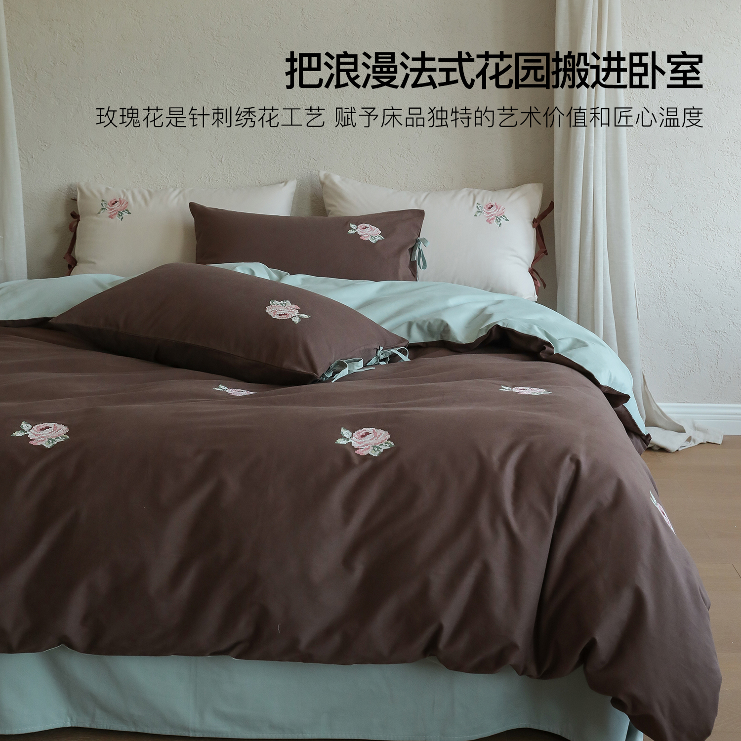 法式浪漫高级感绣花秋冬加厚100S贡缎磨毛1.8m床上四件套全棉床品