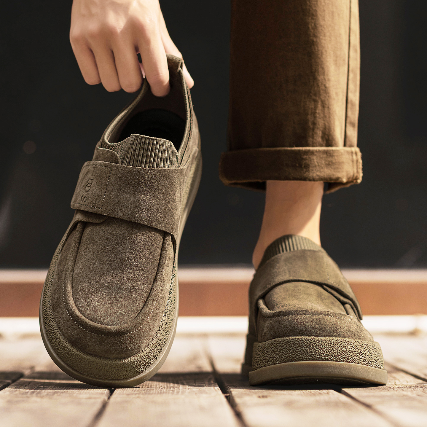 勃肯男鞋秋季休闲运动软底增高开车专用上班工作魔术贴乐福豆豆鞋