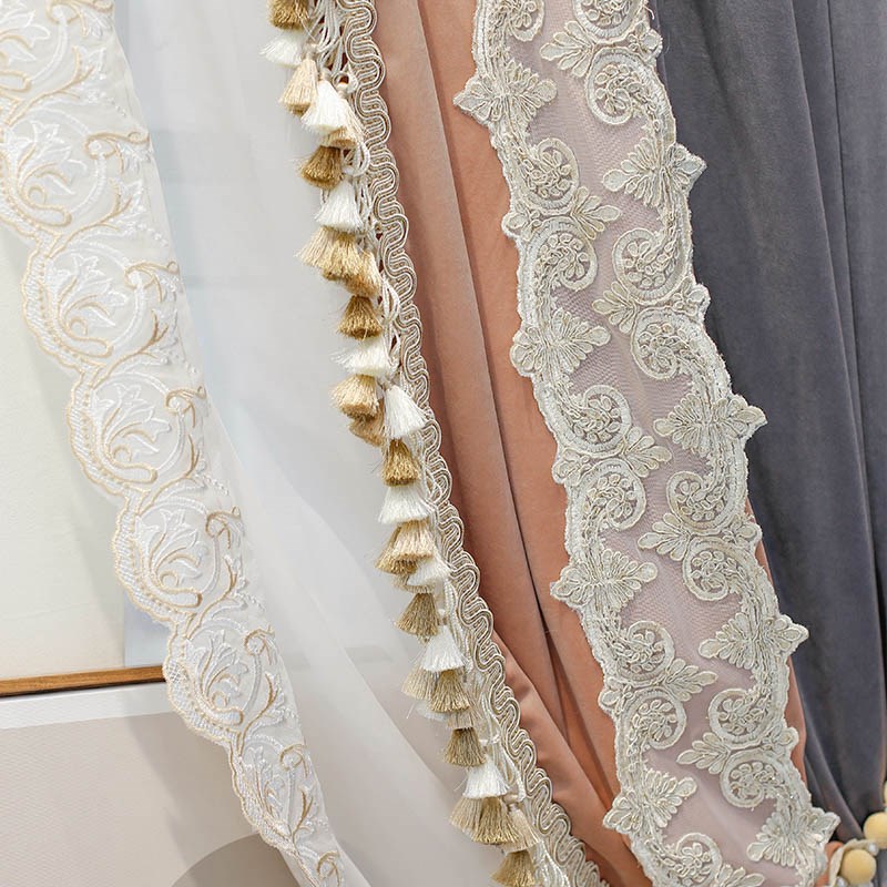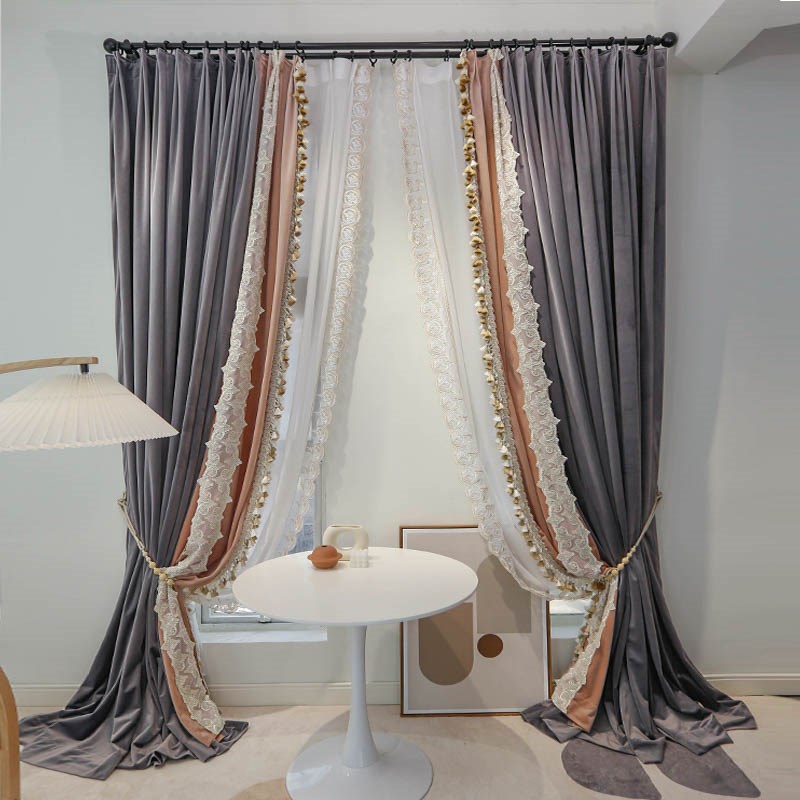 复古法式窗帘高档k大气客厅卧室遮光刺绣蕾丝绒布拼色现代轻奢窗