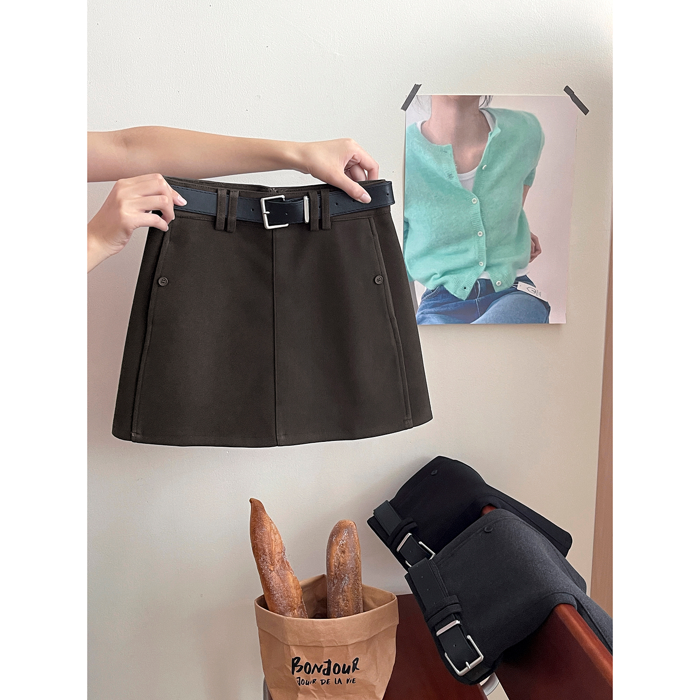 韩国chic咖色羊绒毛呢料西装短裙女秋冬洋气包臀A字百搭半身裙子