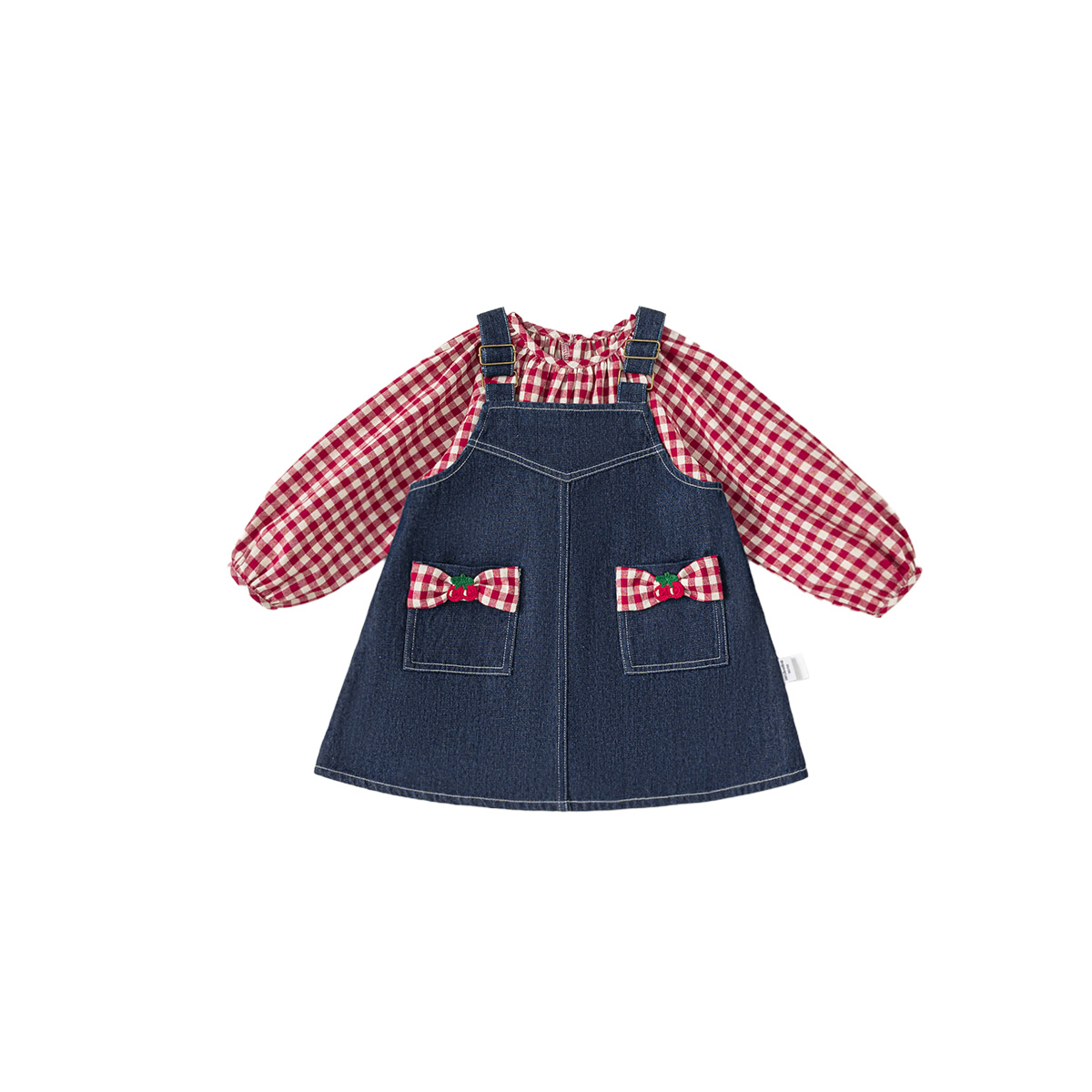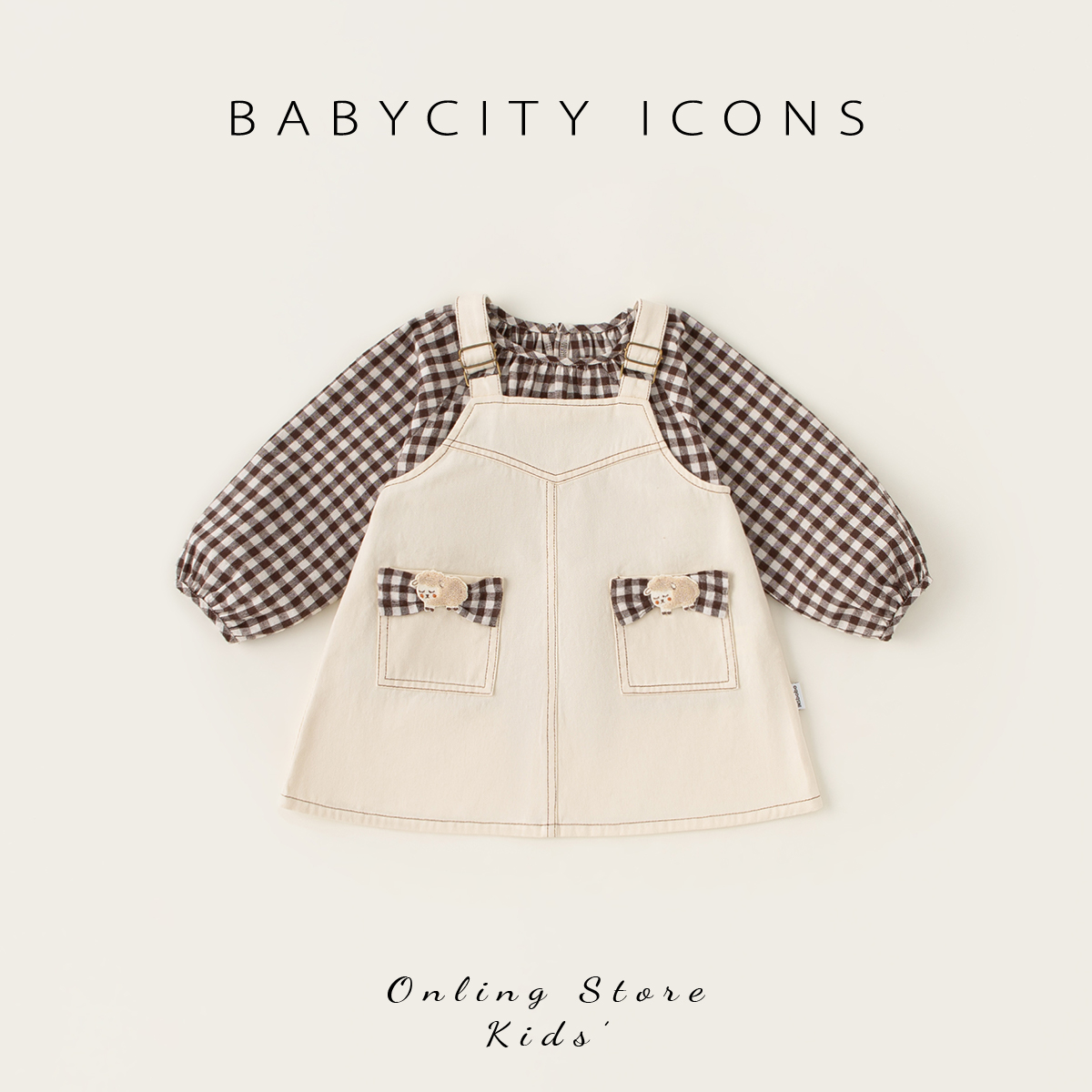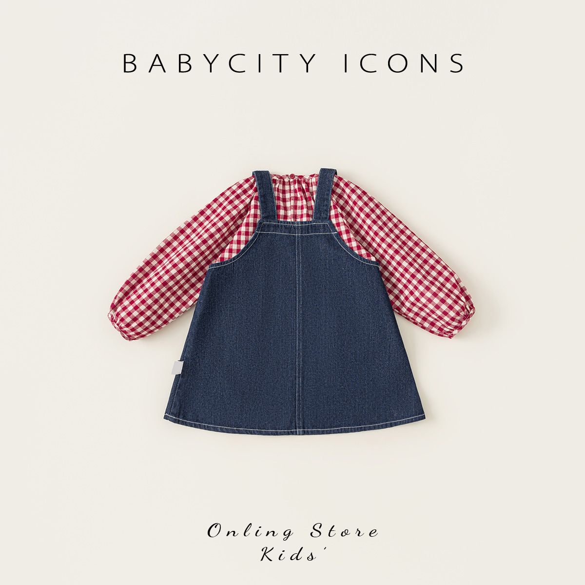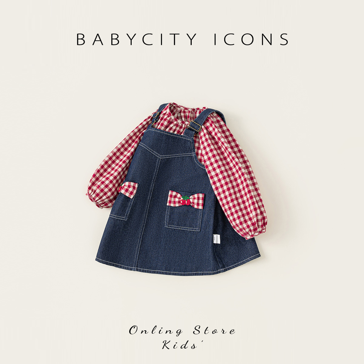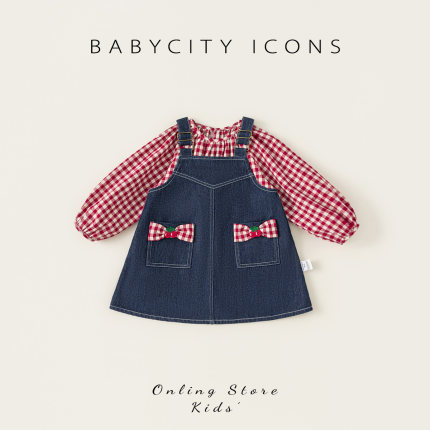 贝贝城宝宝套装洋气格子衫女童秋装2025新款套装小女孩韩版背带裙