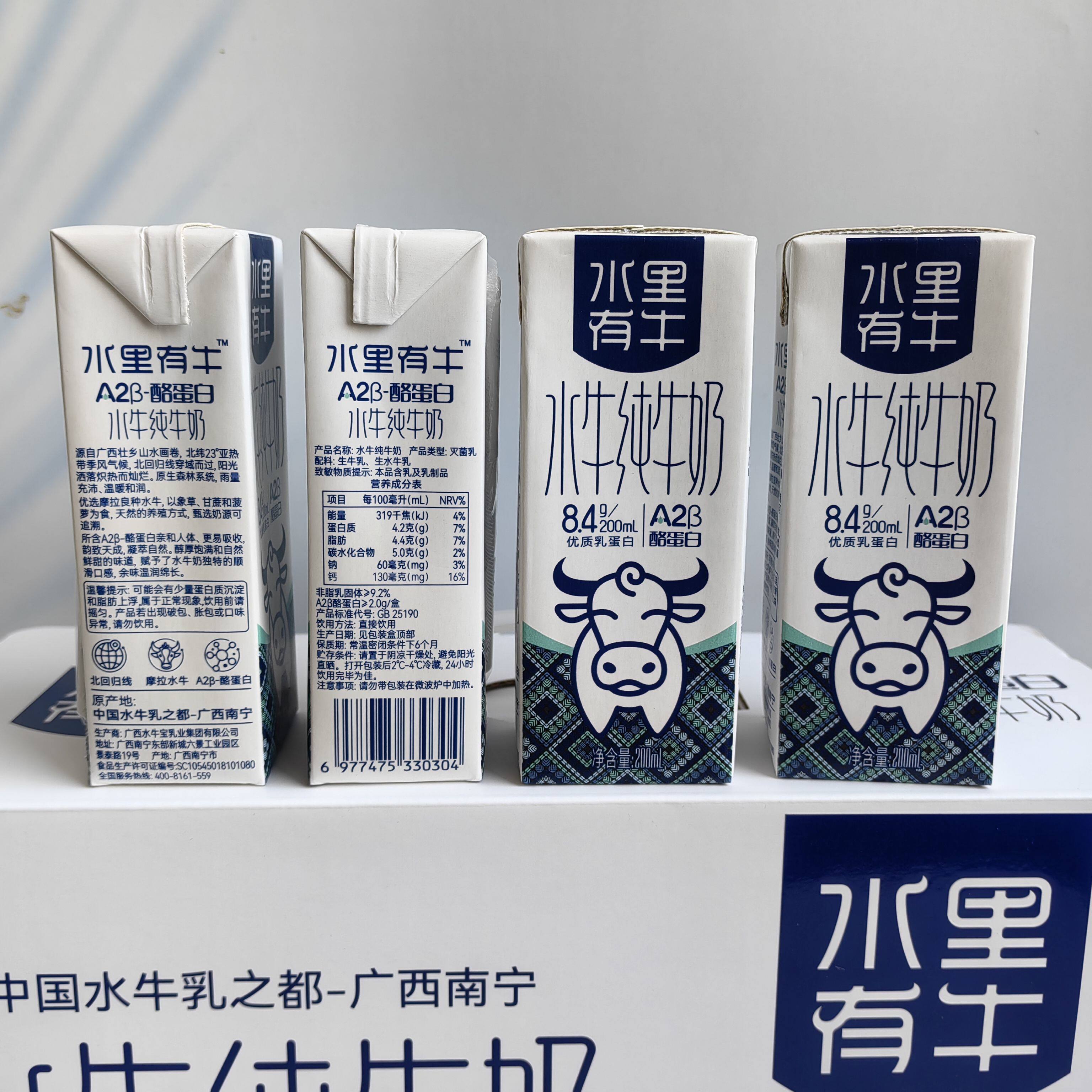 水里有牛水牛纯牛奶A2β酪蛋白水牛纯牛奶200ml*12瓶整件礼盒装