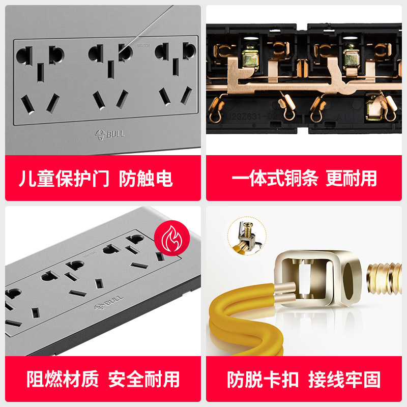 公牛118型开关插座嵌入式家用墙壁暗装九孔多孔厨房插座带开关g04