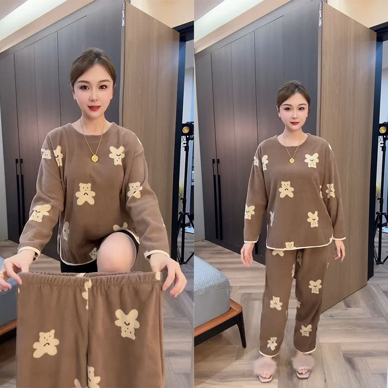 网红爆款奥粒绒长袖睡衣套装
