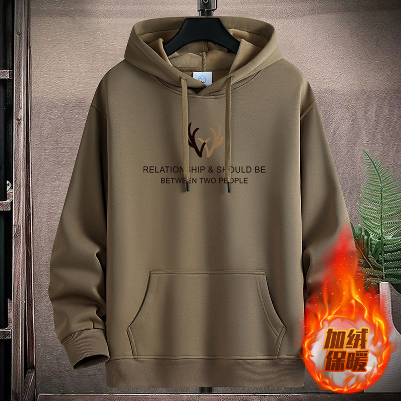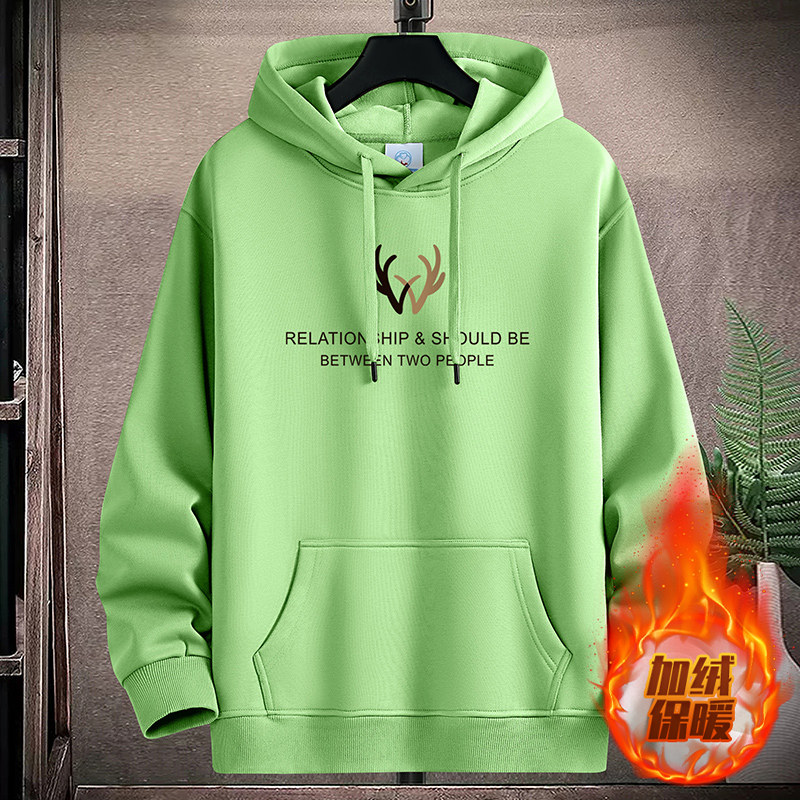 重磅纯棉加绒连帽卫衣男青少年时尚潮流加厚学生冬季套头帽衫外套