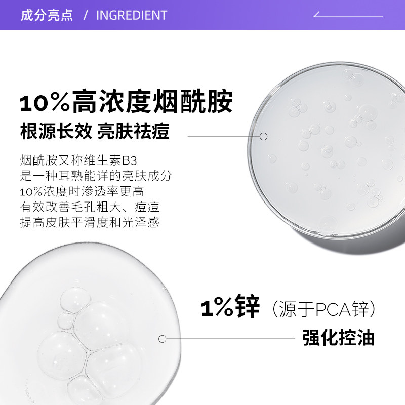 【自营】the ordinary10%烟酰胺+1%锌净颜精华液30ml焕白提亮控油
