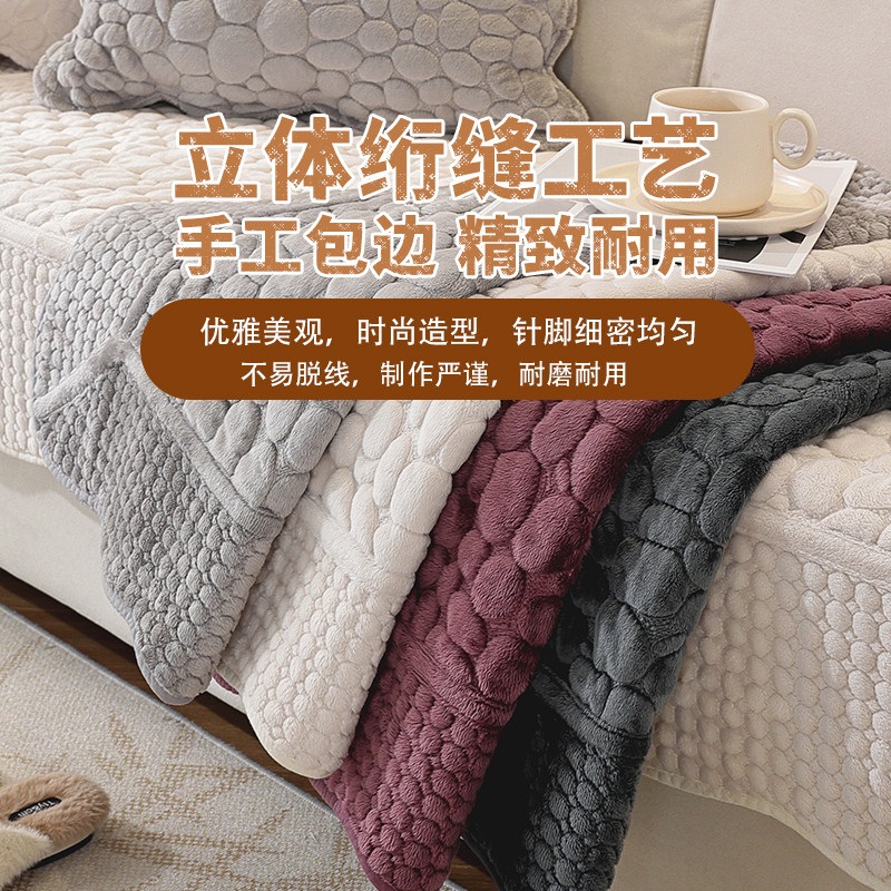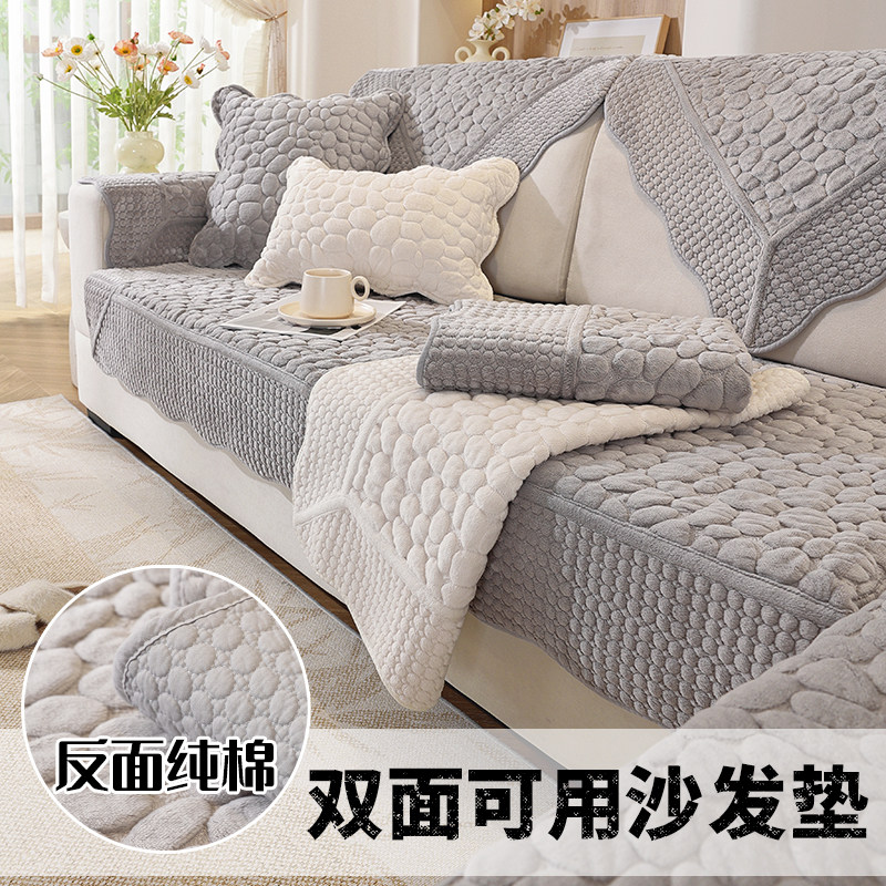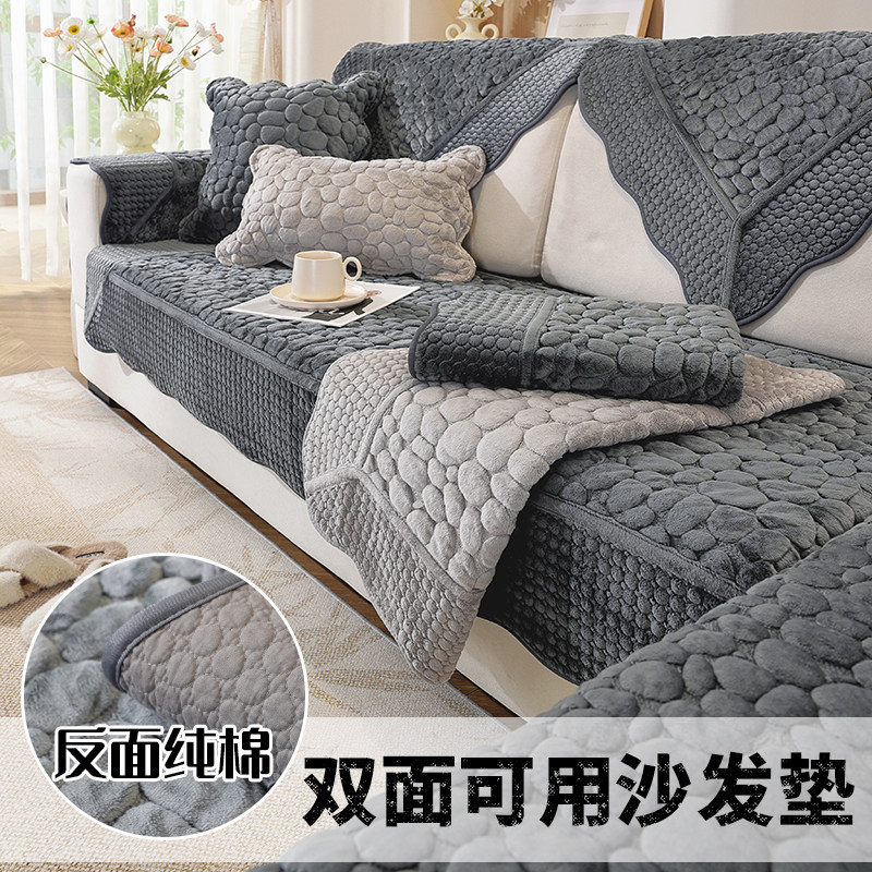 双面可用鹅软石毛绒沙发垫四季通用纯棉刺绣沙发垫布艺坐垫套罩