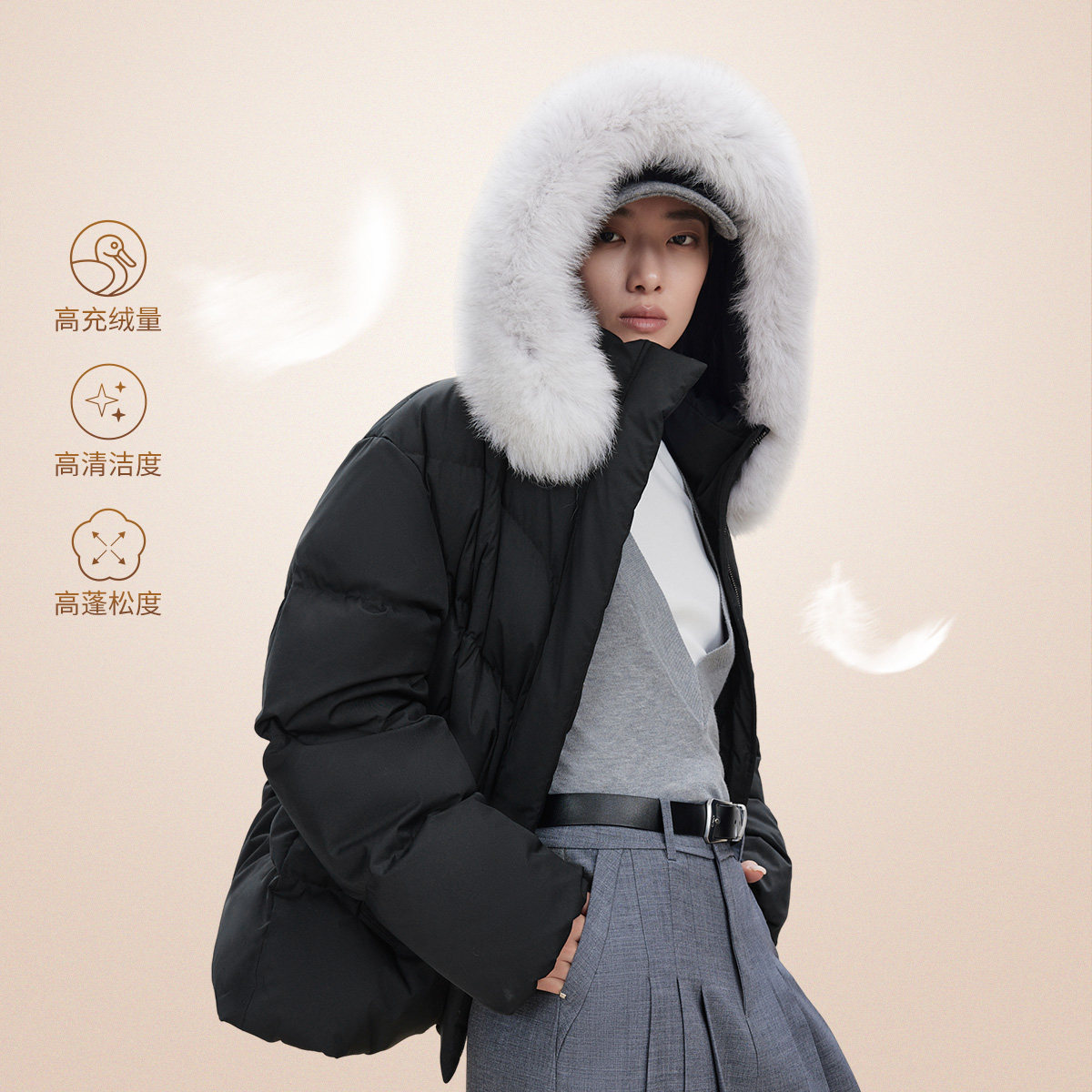 ONLY可拆卸毛领羽绒服
