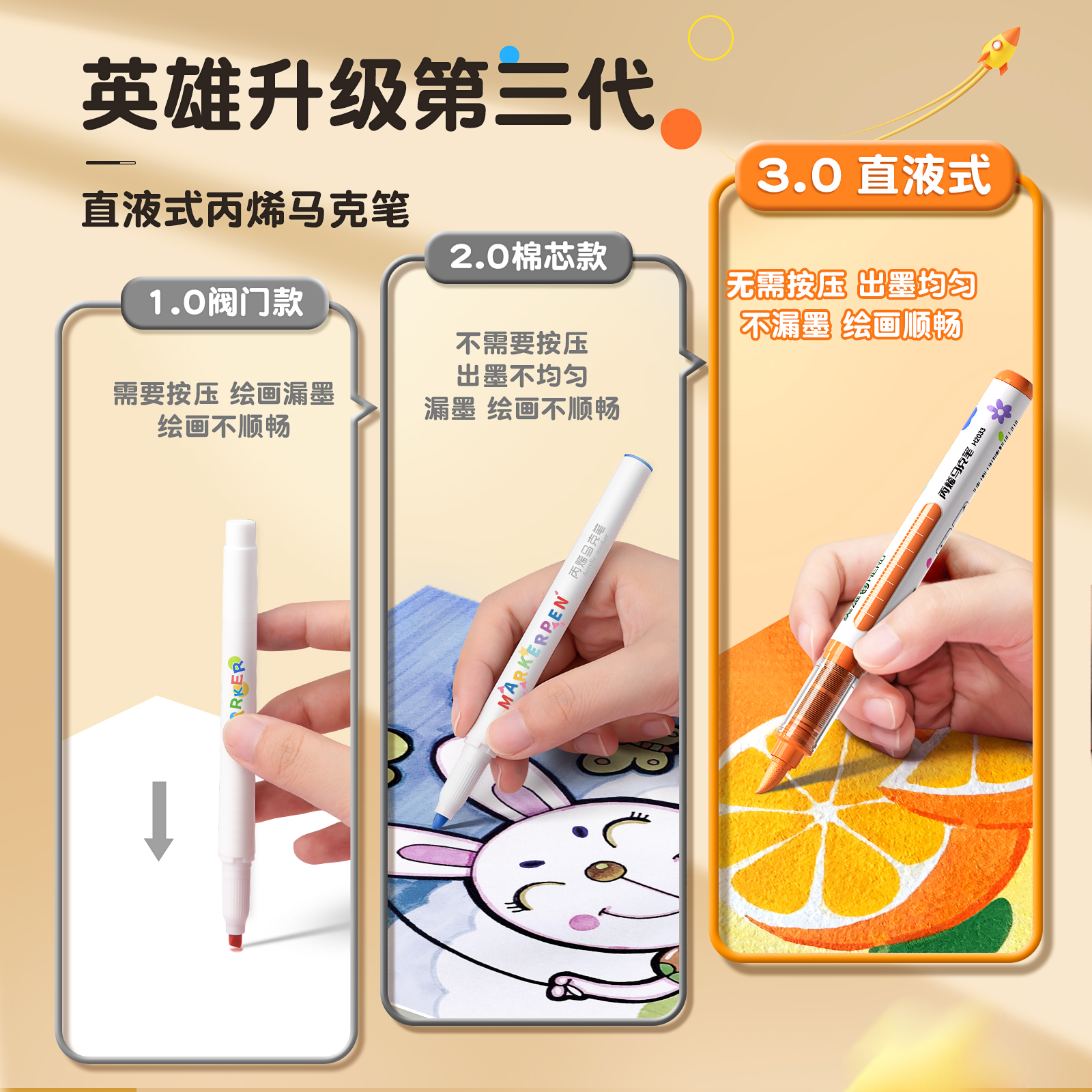 英雄丙烯马克笔高颜值软头水彩油画专用笔直液式水彩笔儿童可洗小学生美术专用画画笔不透色可叠色24色涂色笔