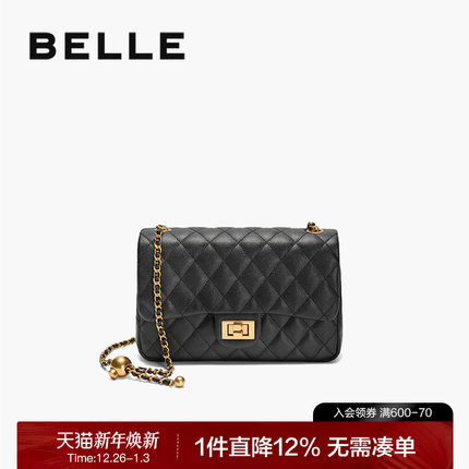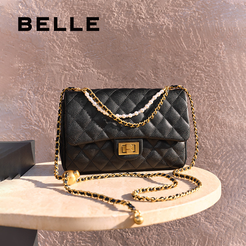 百丽包包女2025鱼子酱链条包女友礼物小香风米白色斜挎包X7196AX5