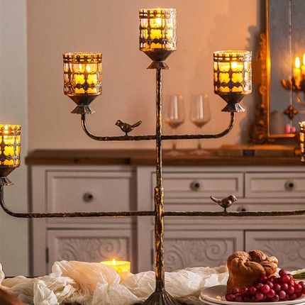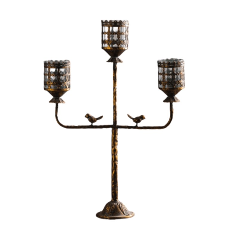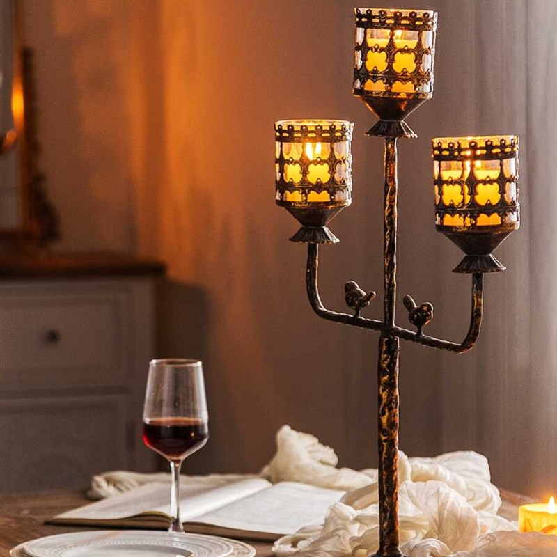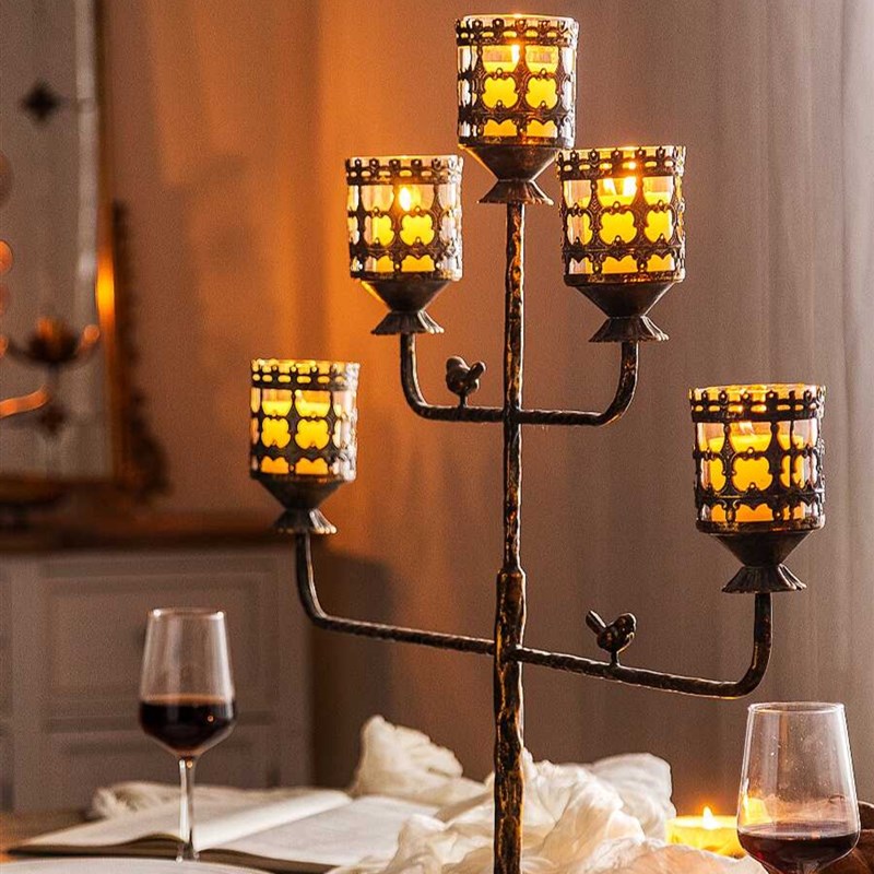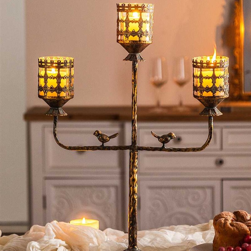 弥录山字形高级金属烛p台客厅餐桌装饰品轻奢浪漫烛光晚餐烛台摆