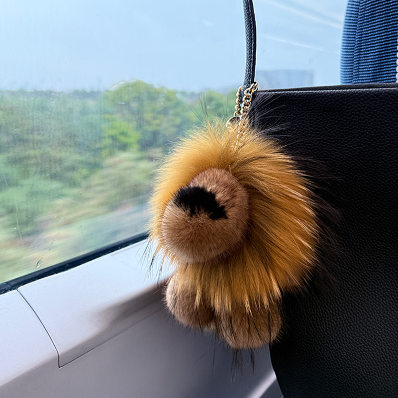奢华正版可爱进口水貂整皮小狮子汽车钥匙扣挂件毛绒包包挂饰礼物