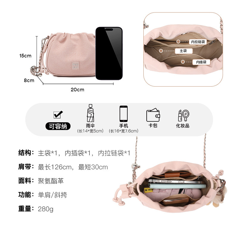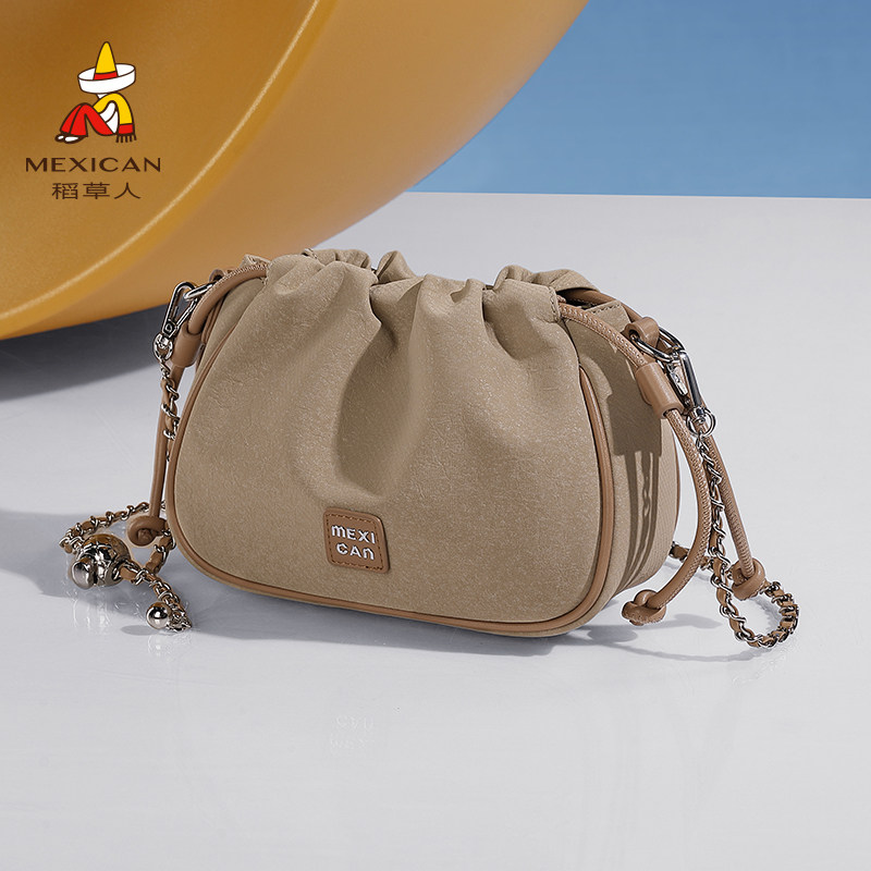 稻草人包包女新款小众洋气水桶包高级感链条单肩斜挎包云朵包正品